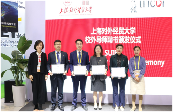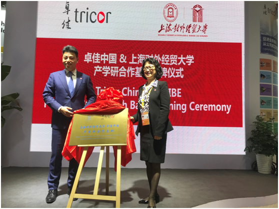 陳潔與張海亮共同為“上海對(duì)外經(jīng)貿(mào)大學(xué) 卓佳中國(guó)產(chǎn)學(xué)研合作基地”揭牌。