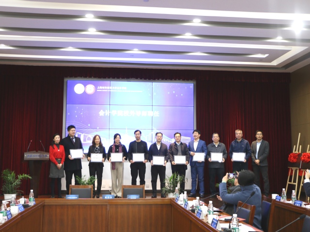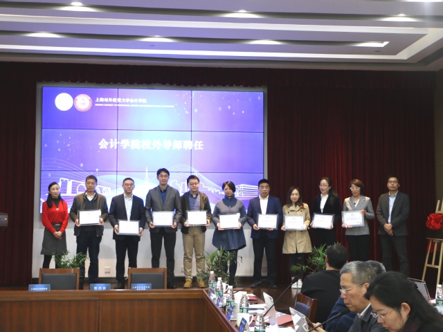 楊慧輝、孫淑偉為新聘任的校外導(dǎo)師頒發(fā)聘書。此次新聘任的校外導(dǎo)師共計(jì)19位,涵蓋了多家會(huì)計(jì)師事務(wù)所、上海市會(huì)計(jì)學(xué)會(huì)證券市場工委、上海市審計(jì)局、證券、基金、科創(chuàng)企業(yè)等金融機(jī)構(gòu)和產(chǎn)業(yè)集團(tuán)的高級(jí)管理人員。