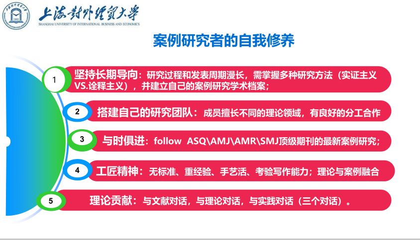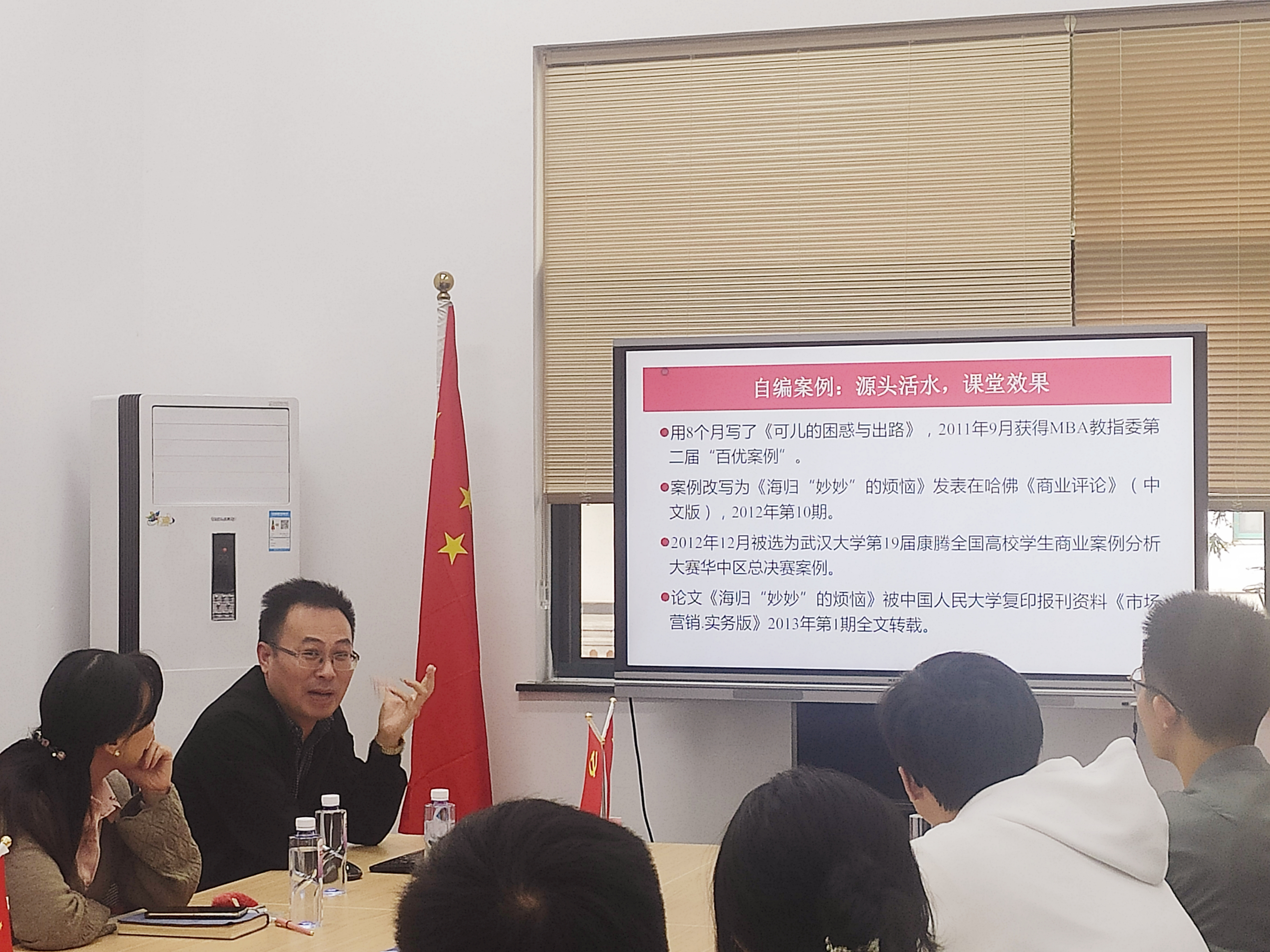 謝佩洪教授從“為何要進行案例教學,什么是教學案例?”這一問題出發(fā),結合當前存在的教學問題和學術制度的影響,提出教學科研要與行業(yè)相關,要進行企業(yè)調研,深入實踐,開展“務實”研究,為教學模式改革探索提供了新思路。他結合自身豐富的案例教學和寫作經歷以及國內外商學院案例教學的歷史和現(xiàn)狀對“如何有效融合案例教學與案例寫作”進一步深入闡釋,強調要把問題埋藏在案例之中,像“尋寶”一樣對案例材料進行挖掘提煉。針對“如何高質量地進行案例開發(fā)”,謝教授認為一個好案例是講一個好故事并把這個故事講好,他總結了案例開發(fā)的五項修煉,即“1個本心、2種類型、3個維度、4個步驟、5項注意”。同時,謝教授對案例研究者的自我修養(yǎng)和學術成果發(fā)表提出了自己的見解,期望同學們能夠在學術研究中實現(xiàn)道與術的統(tǒng)一。