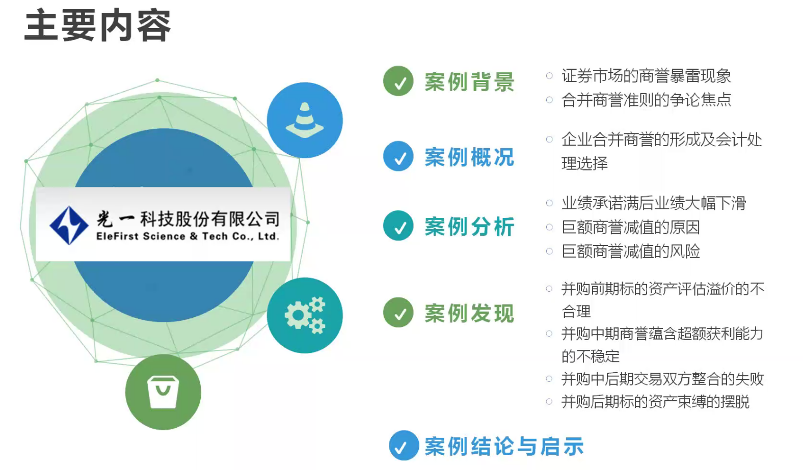 為了讓師生們深入理解案例研究和案例開發實踐,石教授自身開發案例并榮獲MPAcc全國優秀教學案例的“光一科技并購案”為例,分享了他們基于財政部關于商譽減值還是攤銷的議題反饋意見找到了寫作線索,從案例背景、案例概況、案例分析、案例發現和案例結論啟示方面,詳細介紹了整篇案例的構思、分析、寫作、總結的全過程,使案例分析理論知識能夠以實例的方式落地,更直觀的展示給學員們案例分析的整個流程。