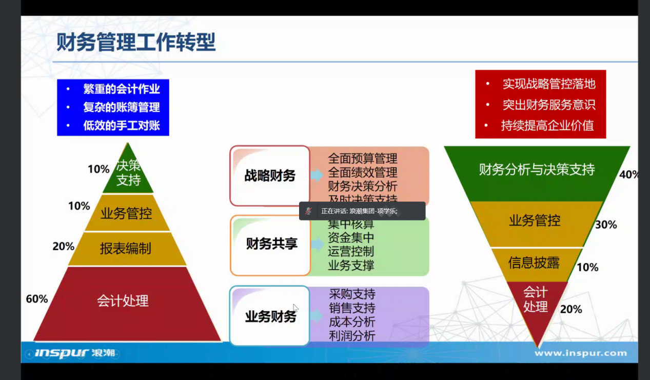 11月22日晚,浪潮集團(tuán)上海區(qū)ERP產(chǎn)品總經(jīng)理項(xiàng)學(xué)樂先生通過騰訊會(huì)議面向我院研究生開展了一場主題為“數(shù)字化時(shí)代智能財(cái)務(wù)”的講座。項(xiàng)學(xué)樂先生曾任浪潮財(cái)務(wù)共享產(chǎn)品部總經(jīng)理,擁有非常豐富的項(xiàng)目經(jīng)驗(yàn),設(shè)計(jì)開發(fā)了浪潮財(cái)務(wù)共享產(chǎn)品GS6.0,并在眾多大型企業(yè)集團(tuán)應(yīng)用推廣。本次講座由MPAcc中心副主任譚海楨老師主持,學(xué)院近百名研究生在線聆聽了這場講座。