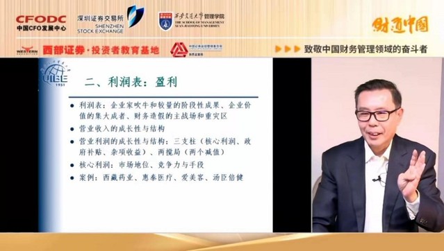 接著,張新民教授介紹了資產負債表及現金流量表的主要關注點。他強調,談資產負債表不能拋開企業的資源情況,談現金流量表不能避開自由現金流。企業的不同資源情況催生出不同的發展方式,并購與自創在商譽與無形資產上有著迥然不同的體現。而企業的自由現金流是否“自由”,經營活動現金流量是否充分,可以很好地衡量企業盈利能力。此外,在講解財務報表的基礎上,張新民教授還以西藏藥業、惠泰醫療、愛美客、湯臣倍健等幾家企業為例,分析了具體的財務報表數據,將理論與實際結合,使之具體化、形象化。