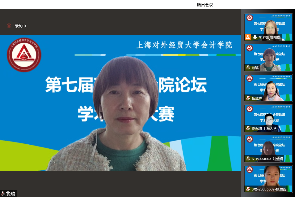 為培養研究生創新意識和學術思維,拓寬學術視野,強化學術規范,提升科研素養與學術創新能力,營造疫情下濃厚的學院研究生科研創新氛圍,4月3日下午,我院通過騰訊會議平臺舉辦了第七屆研究生會院論壇學術征文大賽決賽。大賽邀請了《財會月刊》執行主編張瑾女士、上海大學管理學院副教授婁祝坤擔任評委,會計學院院長裴瑱和副院長楊慧輝作為嘉賓出席了本次活動。