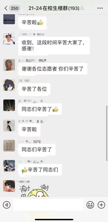 在這支隊伍中,有共產黨員、有努力向黨組織靠近的共青團員們,更有將“服務、引領”刻在心中的團學干部們,他們因為愛,因為責任,因為擔當選擇站在了防疫一線,也因此段志愿經歷建立了深刻的友誼,并肩作戰,團結友愛。而在接受了來自會計學院同學們的志愿服務后,同學們紛紛表示出了對志愿者們的感激與認可,這也為志愿者們帶來了滿滿的力量,而這份“友愛”與溫暖也從志愿者團隊傳遞到了每位同學們的心間。