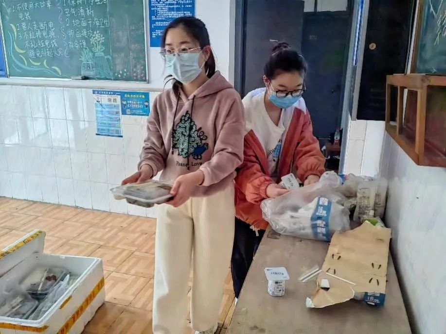 而在宿舍樓棟中,依然可以看到會計學院志愿者們的身影。確認飯菜的份數,在為此次防疫任務搭建的宿舍樓微信群中發送“同學們可以下來拿飯啦!”的消息,一聲聲“您好,需要拿幾份飯呢?”,這樣的畫面,重復出現在志愿者們服務時的場景中,齊心協力,井井有條,給同學們送去貼心而又有力量的服務,以實際行動為彼此間提供幫助。