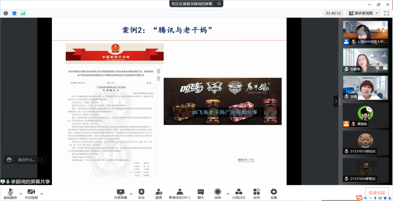 隨后,李教授以銷售業務活動為例,通過“騰訊與老干媽”等案例分析討論了企業綜合內部控制體系應用,分享了有關提升上市公司內部控制有效性的路徑與策略。她指出對于銷售業務存在的風險,企業應該結合實際情況,全面梳理銷售業務流程,完善銷售業務相關管理制度,確定適當的銷售政策和策略,明確銷售、發貨、收款等環節的職責和審批權限,按照規定的權限和程序辦理銷售業務,定期檢查分析銷售過程中的薄弱環節,采取有效控制措施,確保實現銷售目標。