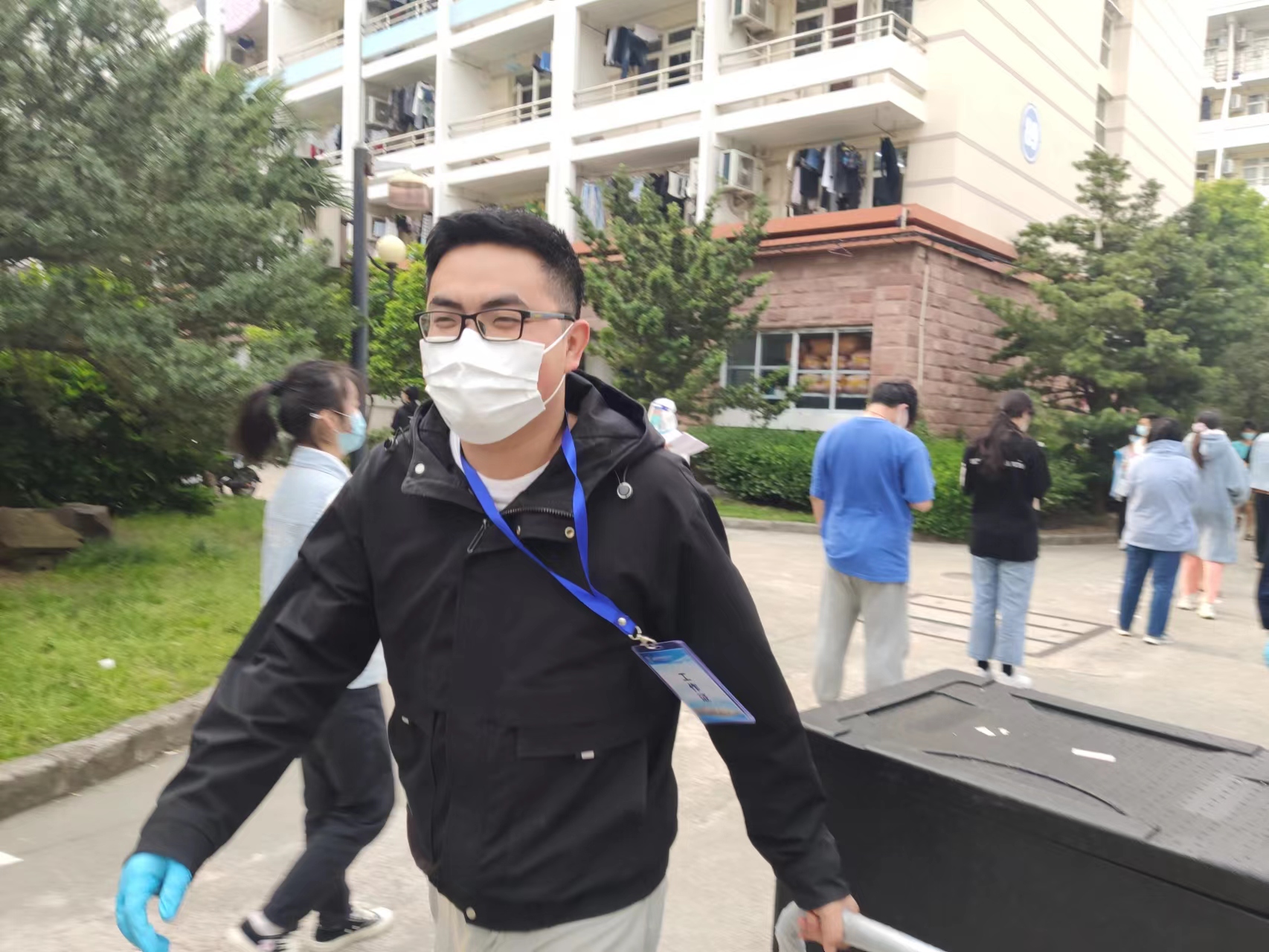 自3月11日以來50余日,支部書記李欽儒一直堅守在疫情防控一線。作為松江校區(qū)疫情防控樓宇專班成員,負責82號樓263名同學的核酸檢測、抗原自測、物資分發(fā)、買飯送飯等工作。疫情就是命令,有時為了第一時間處理突發(fā)情況常常誤了飯點,等到忙完安頓好常常發(fā)現(xiàn)已經(jīng)是深夜。面對同學們的關(guān)心詢問,他卻樂呵呵地撫著肚皮說:“沒事,正好幫我減減小肚子。”
