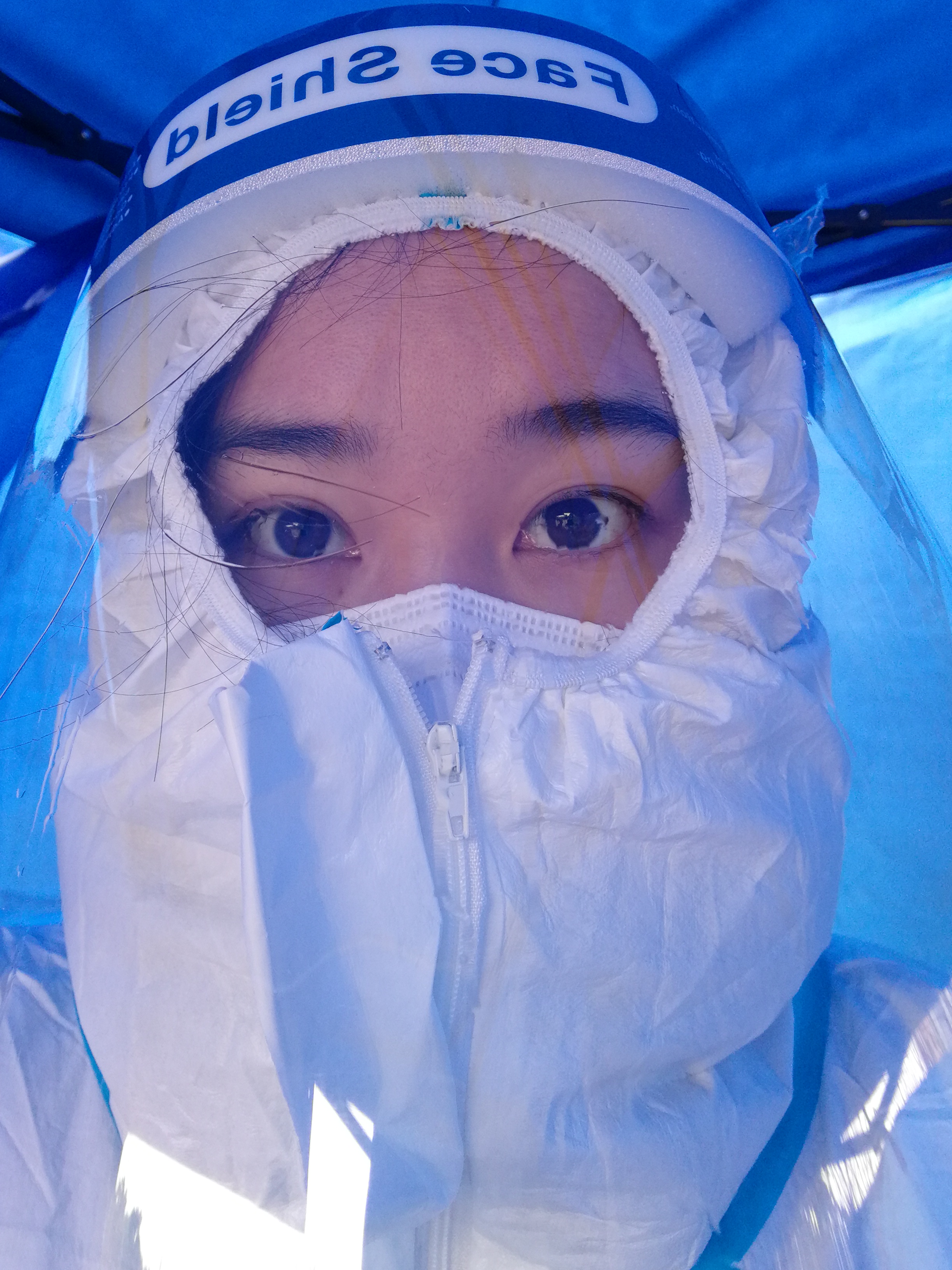 支部組織委員何雪雯在家鄉(xiāng)蘇州爆發(fā)疫情時主動報名成為了一名志愿者,這已經(jīng)是她第三次成為疫情防控志愿者。她充分發(fā)揮黨員先鋒模范作用,她堅信“一名黨員就是一面旗幟”。一輪區(qū)域核酸檢測,就是一個不眠之夜:她幫忙布置采集現(xiàn)場,整理更新社區(qū)居民人房信息。白天,她換上了防護服戴上了口罩、面屏,沖在第一線。疫情無情,但這并不能磨滅她內(nèi)心的火熱和心中的那一抹“紅色信念”。