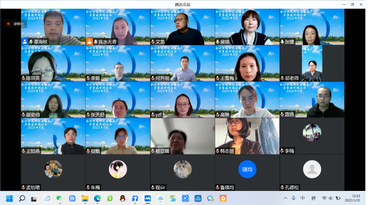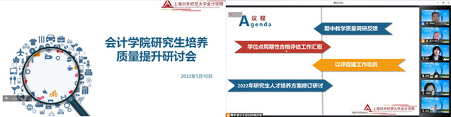 會計學院以教育部學位點周期性評估為契機,堅持“以評促建,以評促改,評建結合,重在建設”的工作方針為原則,促進研究生教育質量提升及內涵建設。5月11日,學院以研究生培養質量提升為主題,召開云端研討會,學院全體教職工參加,舉全員之力、匯全員之智,有效發揮全員參與的能動作用。會議由分管學院研究生培養工作的副院長楊慧輝教授主持。