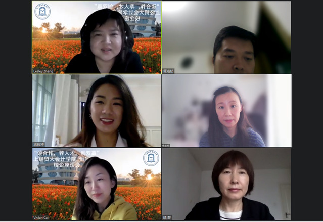 為貫徹落實黨中央、國務(wù)院關(guān)于高校畢業(yè)生就業(yè)工作的決策部署,落實教育部關(guān)于全國高校書記、校長訪企拓崗促就業(yè)專項行動,落實學校關(guān)于開展院長、書記訪企拓崗促就業(yè)專項行動的通知,深入落實學院就業(yè)工作“一把手”工程,會計學院于5月21日,邀請恒生銀行進行了在線洽談,雙方就自身單位近況、產(chǎn)學研合作新方向、學生就業(yè)需求和用人趨勢展開商討。恒生中國人力資源部招聘總監(jiān)蔡元旻、恒生中國人力資源部招聘經(jīng)理張翊,會計學院院長裴瑱教授、副院長楊慧輝教授、黨委副書記施毅婷、MPAcc中心副主任譚海楨出席了本次洽談。