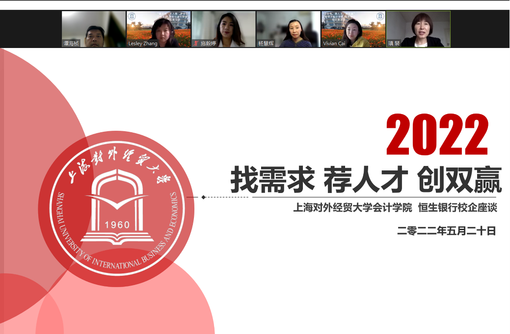 為貫徹落實黨中央、國務院關于高校畢業生就業工作的決策部署,落實教育部關于全國高校書記、校長訪企拓崗促就業專項行動,落實學校關于開展院長、書記訪企拓崗促就業專項行動的通知,深入落實學院就業工作“一把手”工程,會計學院于5月21日,邀請恒生銀行進行了在線洽談,雙方就自身單位近況、產學研合作新方向、學生就業需求和用人趨勢展開商討。恒生中國人力資源部招聘總監蔡元旻、恒生中國人力資源部招聘經理張翊,會計學院院長裴瑱教授、副院長楊慧輝教授、黨委副書記施毅婷、MPAcc中心副主任譚海楨出席了本次洽談。