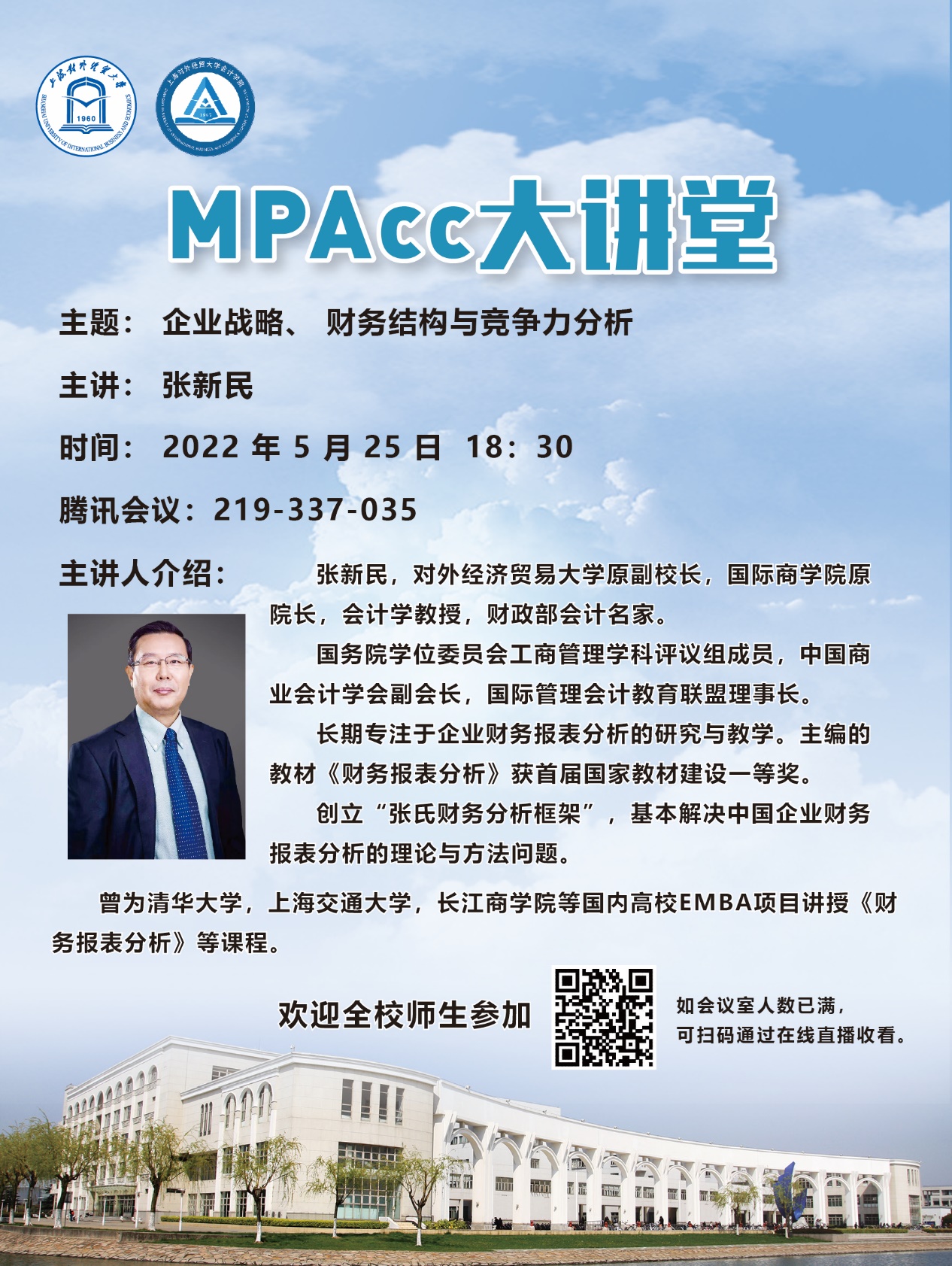 張新民教授,對外經(jīng)濟貿(mào)易大學(xué)原副校長、國際商學(xué)院原院長,會計學(xué)教授,財政部會計名家。國務(wù)院學(xué)位委員會工商管理學(xué)科評議組成員,中國商業(yè)會計學(xué)會副會長,國際管理會計教育聯(lián)盟理事長。