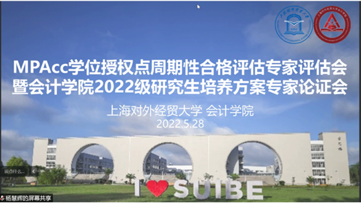 為深入貫徹落實國務院學位委員會、教育部關于印發《學位授權點合格評估辦法》的通知及《關于開展2020-2025年學位授權點周期性合格評估工作的通知》等文件精神,2022年5月28日上午,上海對外經貿大學會計碩士專業學位(MPAcc)授權點周期性合格評估的專家評估會暨2022級研究生培養方案論證會通過騰訊會議在線舉行。