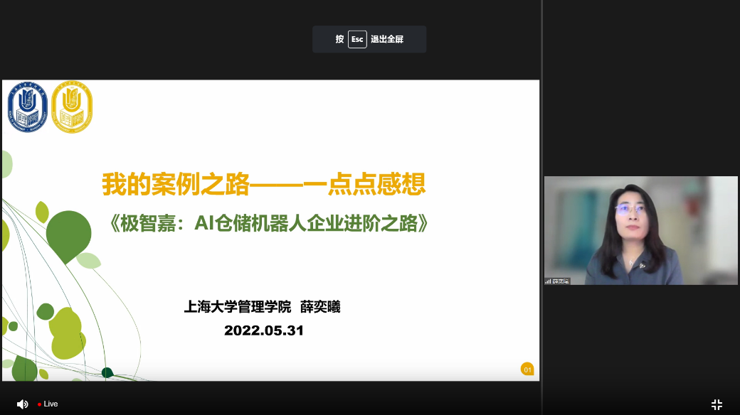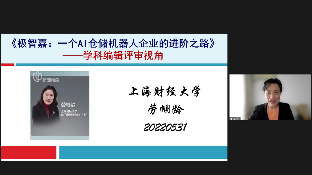 來自上海大學管理學院的薛奕曦副教授首先進行了案例開發經驗分享。薛老師及其團隊撰寫的教學案例蟬聯2020年度和2021年度中國工商管理國際最佳案例獎一等獎。她以自身撰寫的《極智嘉:AI倉儲機器人企業進階之路》為例,詳細闡述了如何選出典型性的案例,如何進行有效的企業現場調研,如何界定正文和案例使用說明的關系并交叉開發,如何進行教學案例正文及使用說明的設計、謀篇布局和課堂教學要點的寫作等高質量教學案例開發的寫作要領。