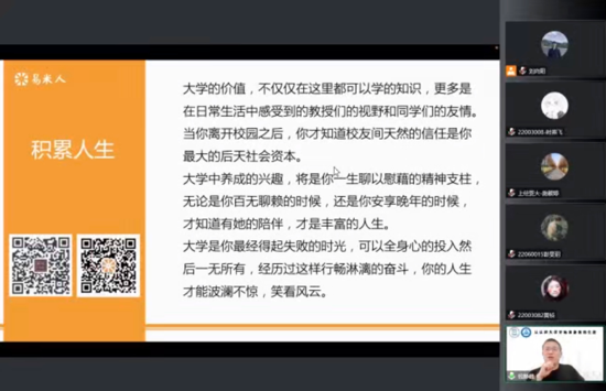 為了幫助2022級本科新生全面做好大學學業和發展規劃,快速適應大學學習與生活,科學進行自我認知和生涯評估,會計學院于9月30日下午通過騰訊會議開展了“錨定生涯,壯‘職’凌云”新生入學教育系列活動——“從認識大學開始準備我的生涯”生涯導航講座。會計學院黨委副書記施毅婷,本科新生輔導員劉向陽和2022級252名本科新生參加了此次講座。