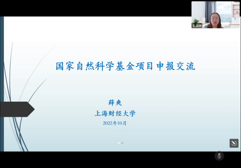 2022年10月25日下午,上海財經大學會計學院薛爽教授在線向我院師生分享了國家自然科學基金申報經驗。交流會由張天舒老師主持,會計學院師生參加了本次交流會。