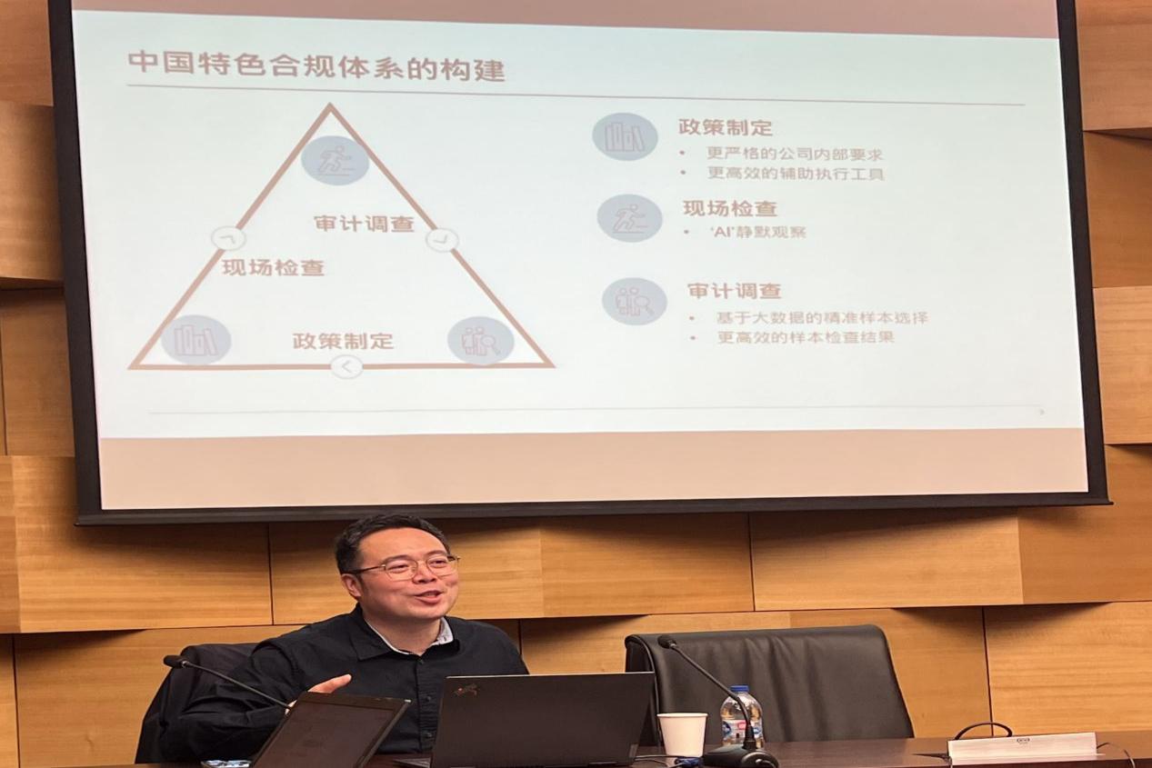 姚麒從醫藥企業常見活動類型及其潛在合規風險以及合規監管等方面向同學們闡述了合規體系的現狀,并舉例說明實務工作中采用“飛行檢查”和問詢的手段可以有效發現員工在進行費用報銷時的合規風險。他結合自己多年的工作實踐經驗和研究成果重點從事前的政策制定、事中的現場檢查和事后的審計調查這三大方面論述了如何構建中國特色的合規體系,并從以監管為基礎和關注個體差異兩個視角分析了未來合規發展趨勢。講座最后,姚麒詳細回答了同學們提出的有關自身的職業規劃和未來合規的發展趨勢等問題。