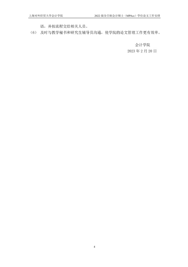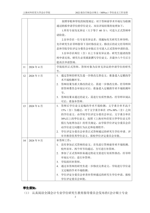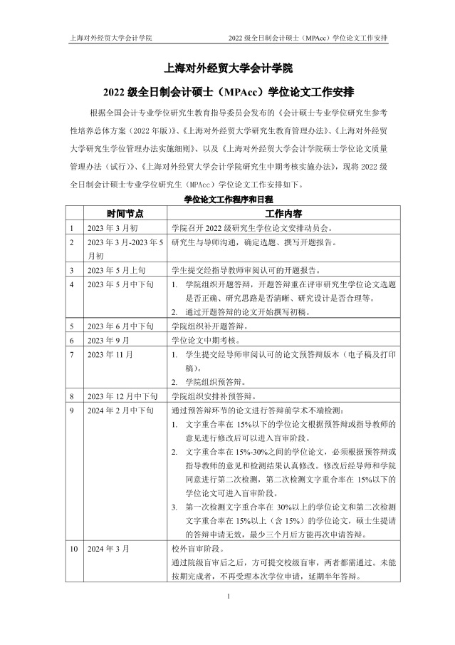 上海對外經貿大學會計學院2022級全日制會計碩士(MPAcc)學位論文工作安排