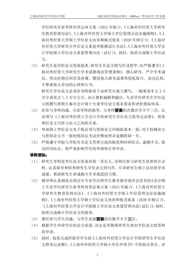 上海對外經(jīng)貿(mào)大學(xué)會計學(xué)院2022級全日制會計碩士(MPAcc)學(xué)位論文工作安排