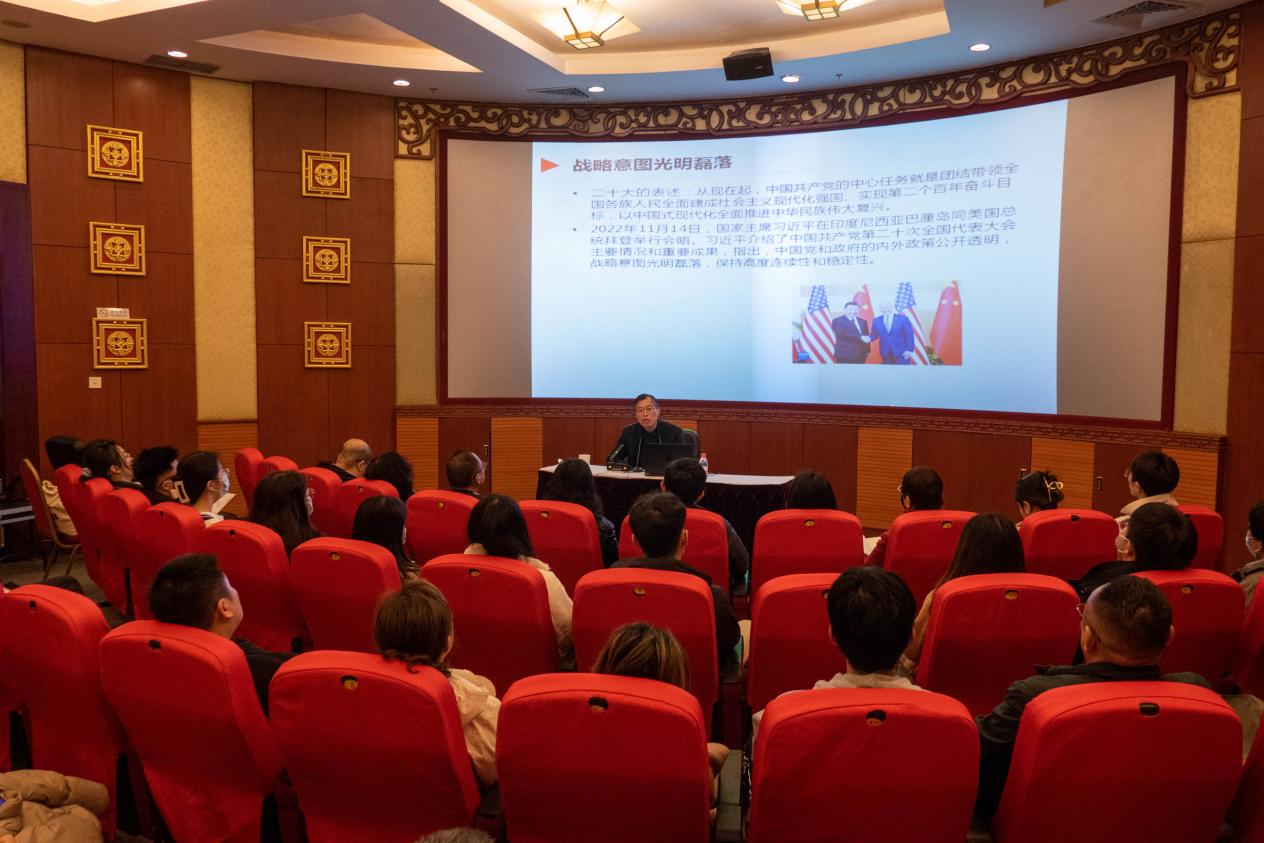 上海話劇藝術中心黨委副書記、紀委書記錢躍主講了《中國式現代化:強國建設、民族復興的康莊大道》的專題黨課。他從現代化之問出發,結合中國發展的歷史和現實情況、黨的二十大報告內容等,深入闡述了中國式現代化的五大特征。他提出現代化并不是只有西方制度模式這一條路,要破除“現代化=西方化”的路徑依賴和思維方式,中國式現代化需要跨越“發展陷阱”,共同富裕是現代化的必由之路,中華民族偉大復興進入了不可逆轉的歷史進程。