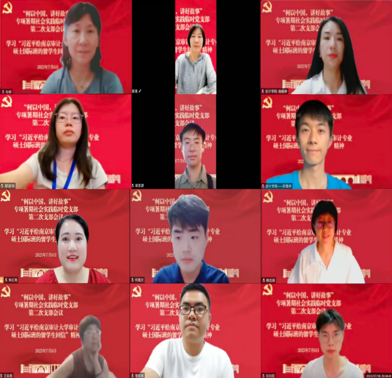 7月6日,會計(jì)學(xué)院2023年“何以中國,講好故事”專項(xiàng)暑期社會實(shí)踐臨時(shí)黨支部的師生黨員組織了一次別開生面的主題黨日活動,共同學(xué)習(xí)了中共中央總書記、國家主席習(xí)近平7月4日給南京審計(jì)大學(xué)審計(jì)專業(yè)碩士國際班留學(xué)生的回信精神。
