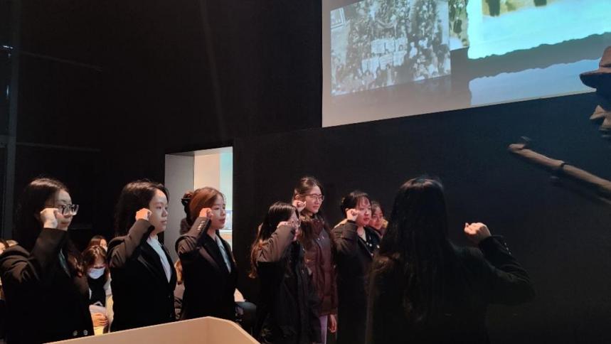 在松江英烈紀念館中,講解員帶領全體師生共同追溯了重點展陳的22位松江英烈的英勇事跡。參觀“永恒的閃耀”上海消防烈士紀念展時,同學們仿佛跨越時間與為拯救人民生命財產安全而犧牲的消防英烈對話,在深切緬懷的同時,更加深刻地認識了中國革命的歷史意義與時代價值。