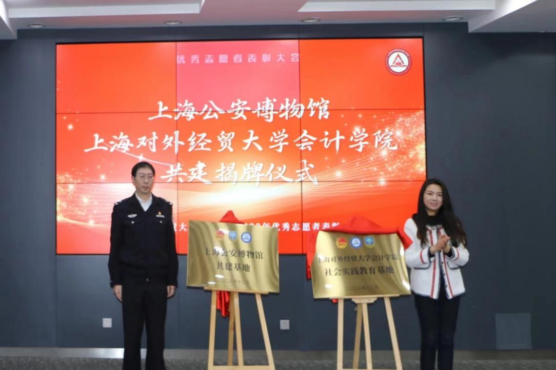 為學習貫徹習近平總書記在黨的二十大報告中“完善志愿服務制度和工作體系的重要講話精神,廣泛弘揚奉獻、友愛、互助、進步的志愿精神,更好發揮志愿服務的積極作用,促進社會文明進步。上海對外經貿大學會計學院與上海公安博物館社會實踐教育基地揭牌成立。上海對外經貿大學會計學院黨委副書記施毅婷、上海公安博物館副館長周宇冬為共建基地揭牌。上海對外經貿大學會計學院和上海公安博物館共同建好“社會實踐教育基地”,用好、學好、宣傳好館藏資源,積極發揮志愿者創新實踐能力,讓志愿服務成為助推公安事業發展的強大動力。