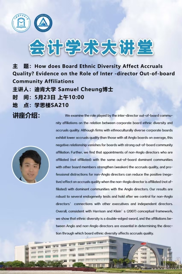 學(xué)術(shù)大講堂 | Evidence on the Role of inter-director Out-of-board Community Affiliations How does Board Ethnic Diversity Affect Accruals Quality?