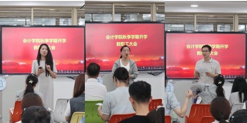 9月9日下午,會(huì)計(jì)學(xué)院在學(xué)思樓召開(kāi)新學(xué)期全體教職工會(huì)議,傳達(dá)學(xué)習(xí)學(xué)校秋季學(xué)期務(wù)虛會(huì)精神,部署新學(xué)期重點(diǎn)工作。學(xué)院領(lǐng)導(dǎo)班子成員及全體教職工參加會(huì)議,會(huì)議由院長(zhǎng)裴瑱主持。