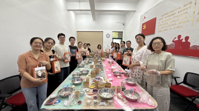 此外,工會還為每位老師準備了精美的果殼鈴掛件作為中秋紀念品,寓意平安團圓。活動最后,全體教師合影留念,記錄下這美好時刻。