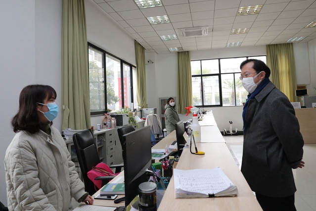 觀摩課程在線教學后,汪榮明詳細聽取了學校在線教學整體工作情況匯報,并慰問了為在線教學提供服務保障的一線工作人員。