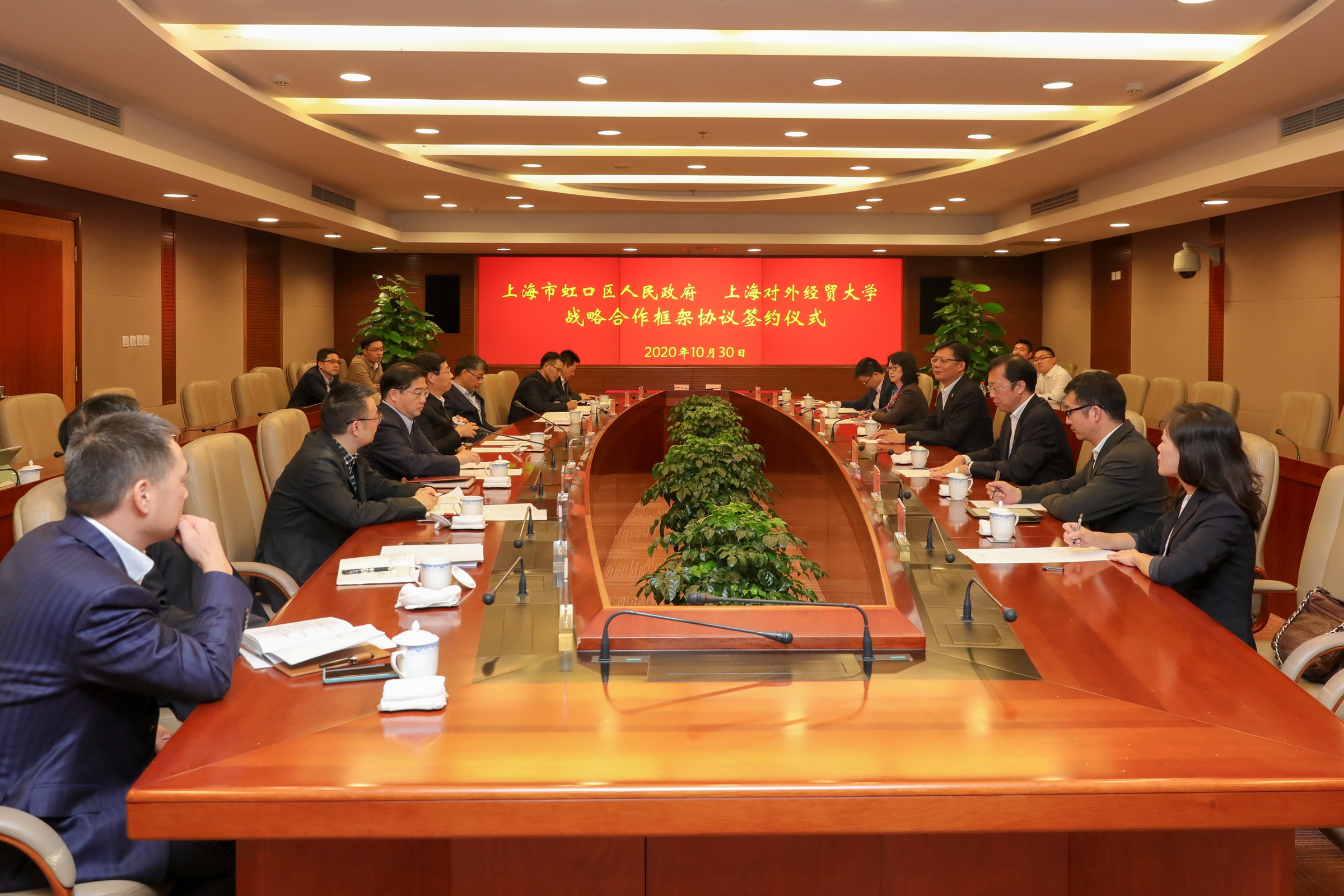 為深入推進上海“五個中心”“四大品牌”建設,共同推動北外灘成為新時代都市發展新標桿、核心功能重要承載地、新發展理念實踐區,10月30日,我校與上海市虹口區人民政府戰略合作框架協議簽約儀式在虹口區人民政府機關會議室舉行。上海市虹口區委書記吳信寶,區委副書記、區長胡廣杰,副區長鄭宏,我校黨委書記殷耀,校長汪榮明,副校長陳潔,虹口區區政府和我校相關職能部門負責人出席并見證了簽約儀式。