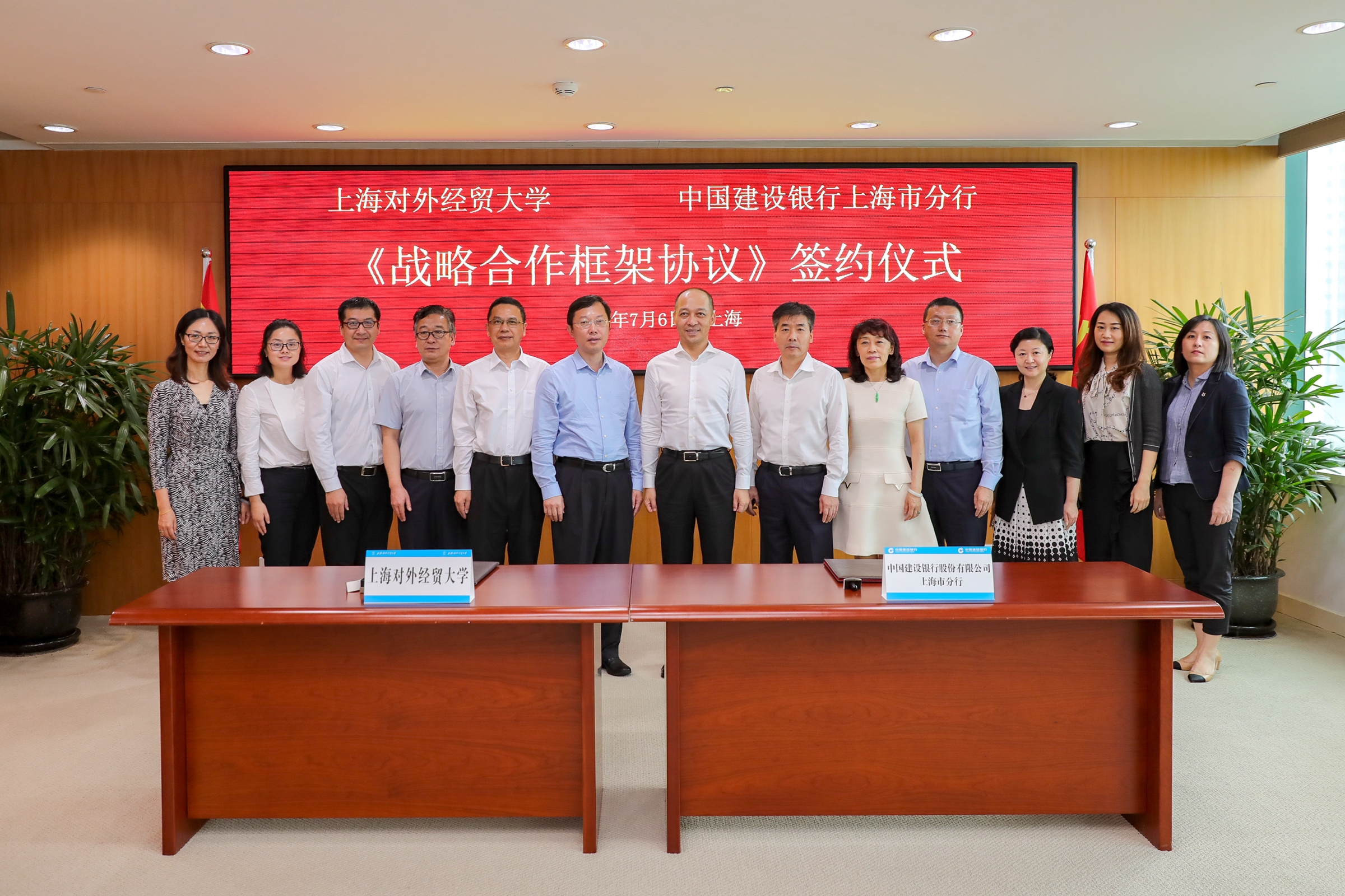 會上,在雙方嘉賓的見證下,我校副校長張道方與建行上海分行副行長齊紅代表合作雙方簽署了《上海對外經貿大學-中國建設銀行上海市分行戰略合作框架協議》。