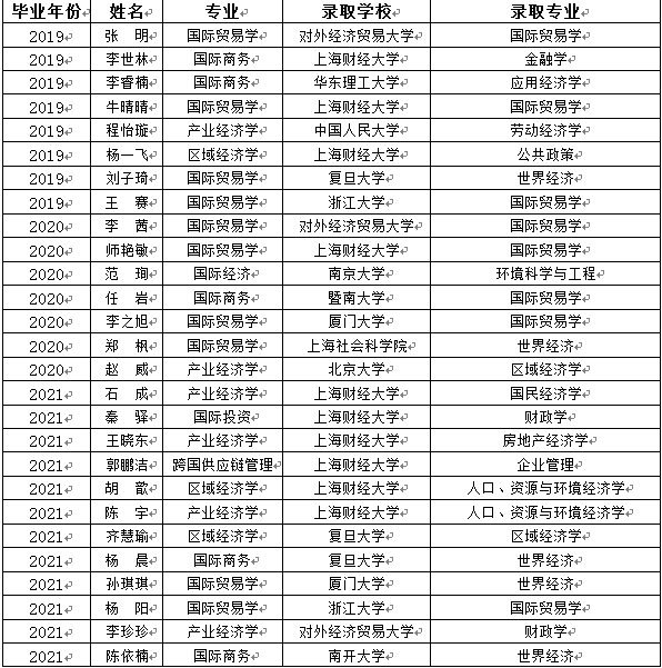 附表 2019—2021年國際經貿學院考取國內重點高校博士研究生概況