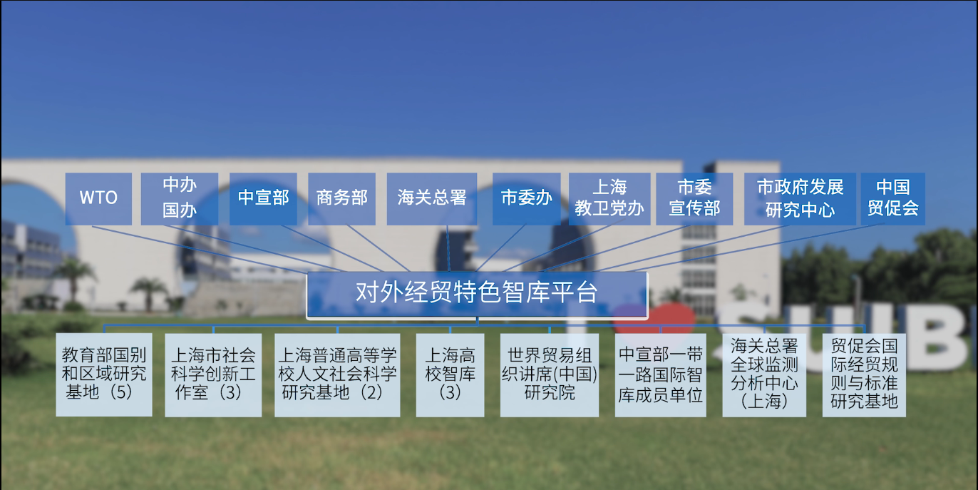 學校主動對接國家戰略和上海經濟社會發展需求,大力推進學科創新平臺建設,相繼成立“一帶一路”國家經貿關系與合作高等研究院、自由貿易港戰略研究院、世貿組織講席(中國)研究院和人工智能與變革管理研究院、國際合作研究院等5個實體性科研創新平臺。學校承接了中國(上海)自由貿易試驗區建設中架構設計和第三方評估,以及“一帶一路”橋頭堡建設任務等重要使命。學校成為國家發改委“一帶一路”建設協同高校,并入選中宣部牽頭成立的“一帶一路”國際智庫合作委員會成員單位和國家國際發展合作署核心智庫單位。