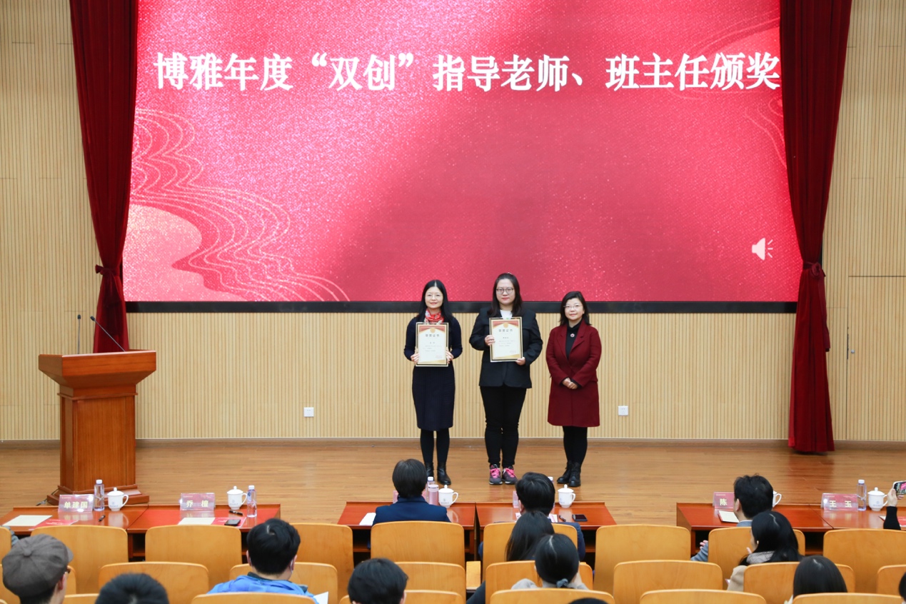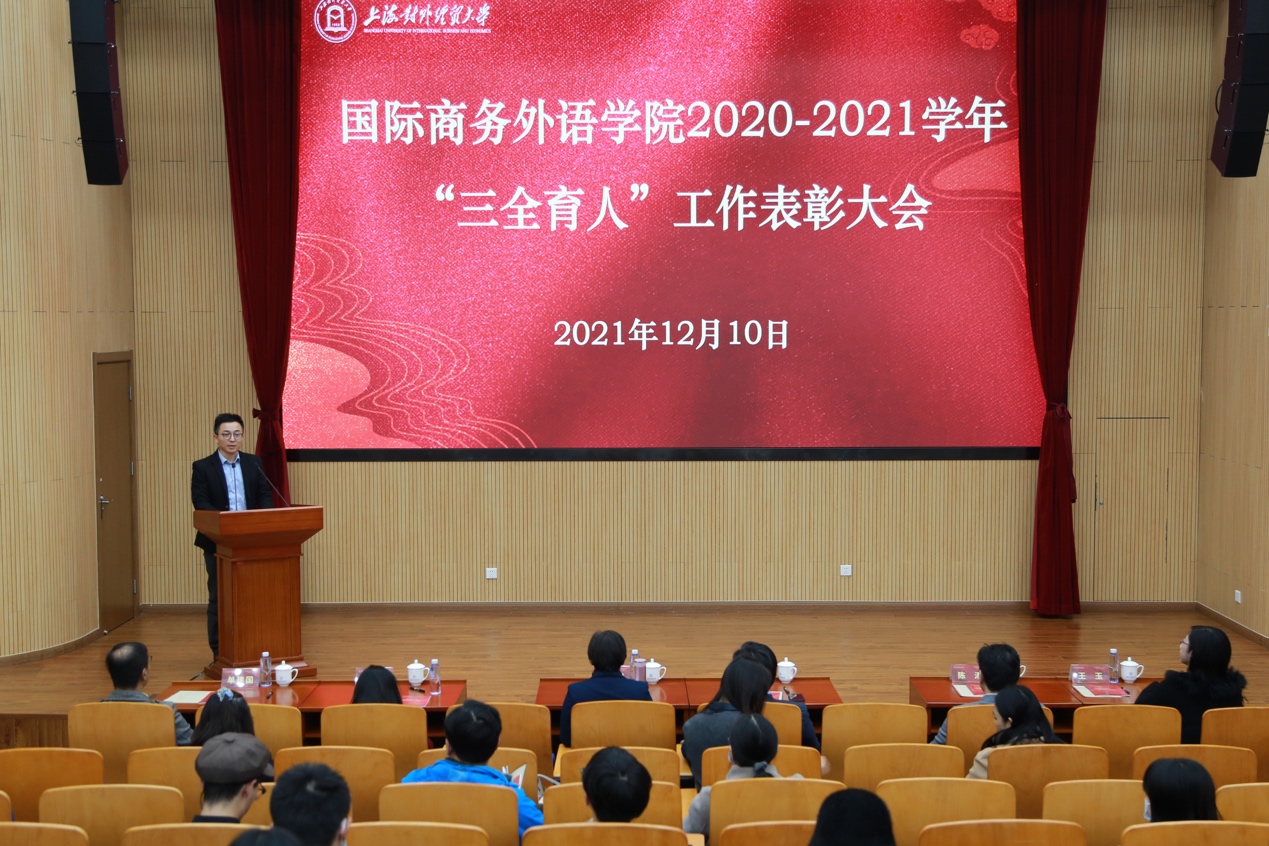劉根春宣讀國際商務外語學院2020-2021學年博雅年度“三全育人”系列獲獎名單。