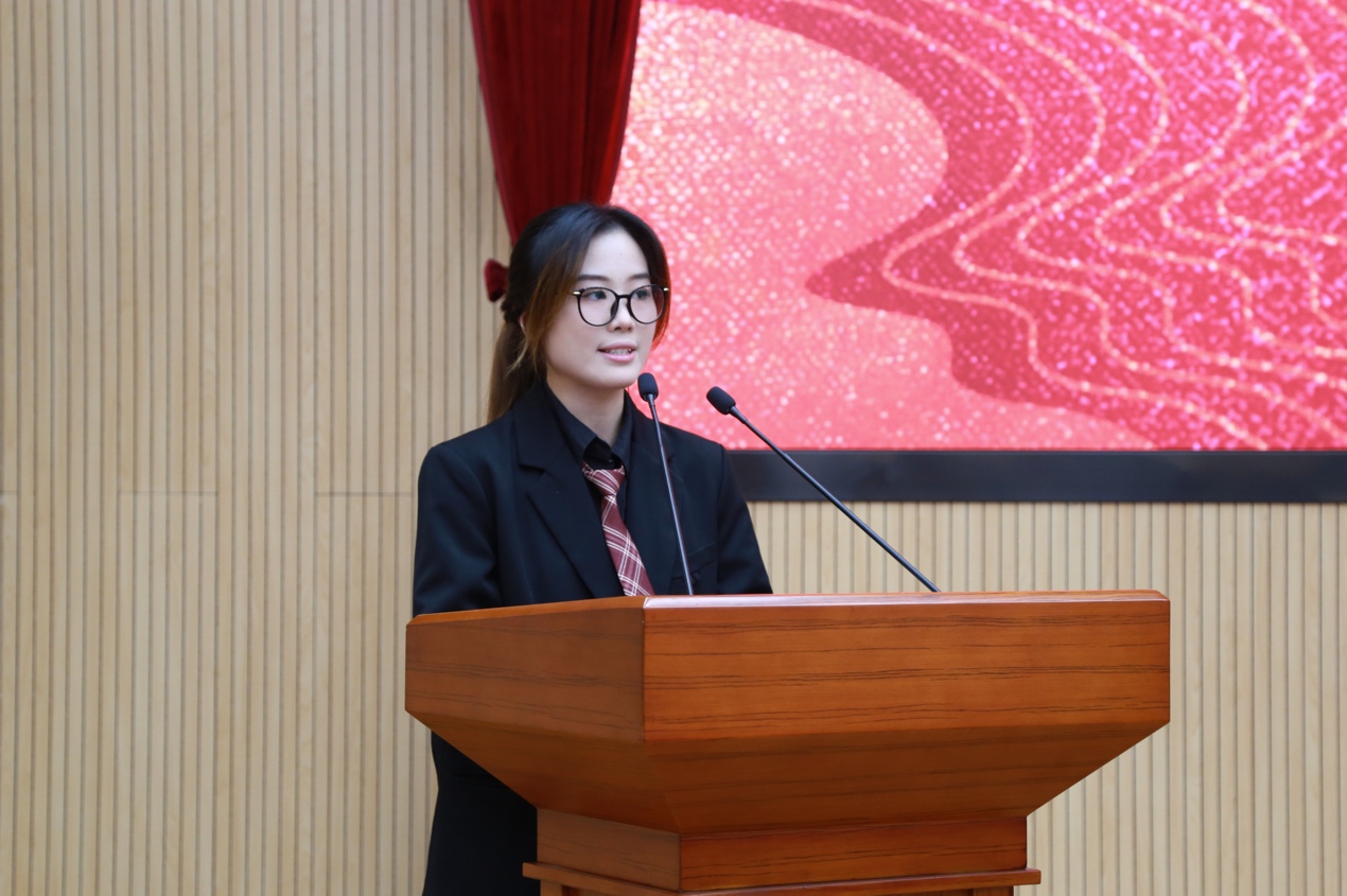 博雅“五一”勞動獎獲獎代表郭凈雯同學發言,她結合專業優勢、創造性勞動、公益志愿等闡述了“用勞動精神投身于勞動實踐”的必要性和重要性,號召同學們知行合一,不斷在勞動中明確初心使命,為講好中國故事貢獻個人力量。