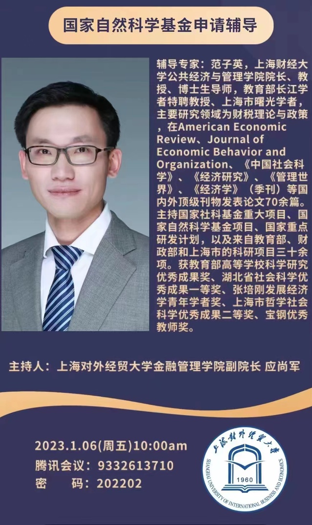 ,上海財經大學范子英教授:“國家自然科學基金申請”專題分享,歡迎廣大教師積極參與。