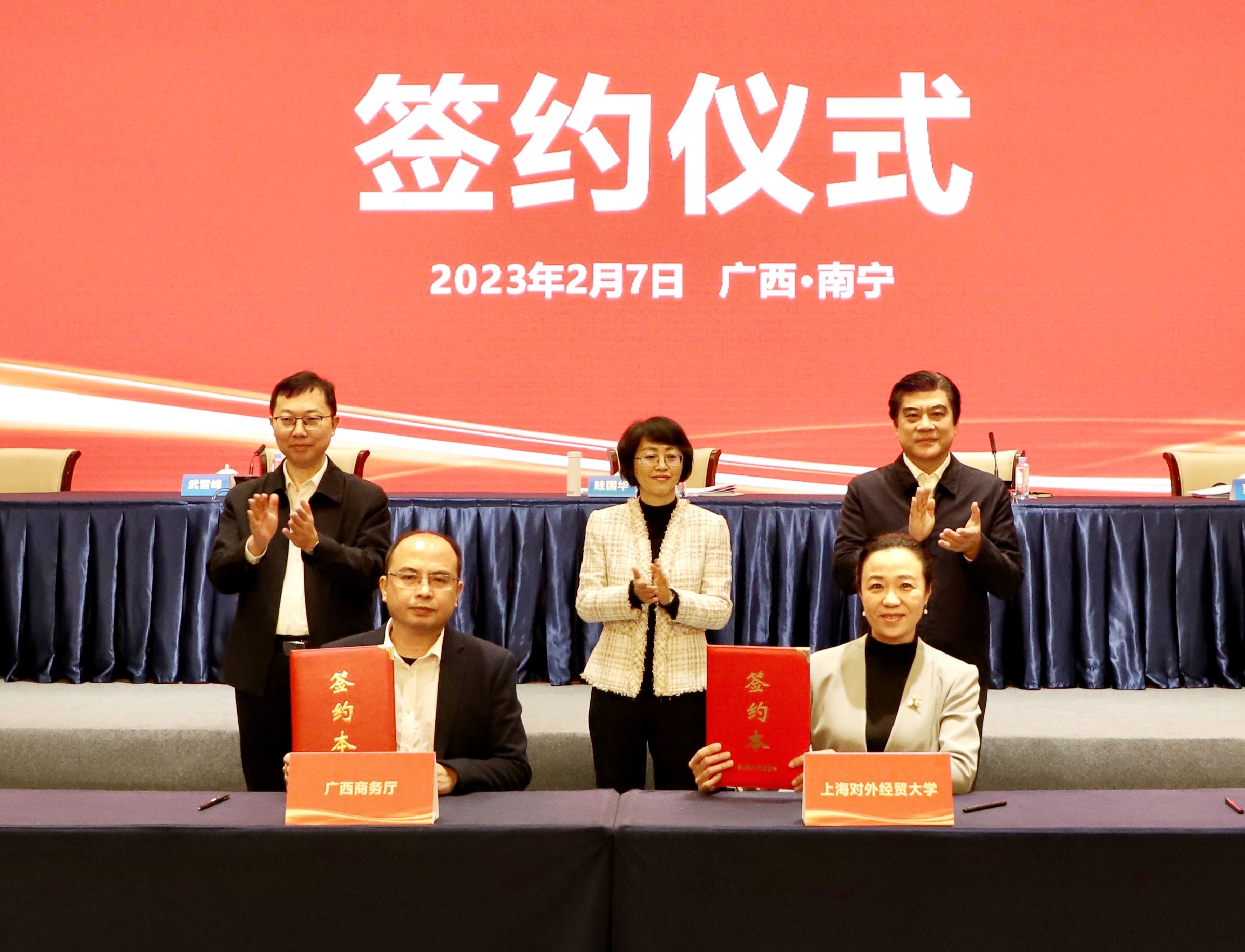 2月7日上午,廣西壯族自治區商務廳舉行簽約儀式,在自治區副主席眭國華、自治區商務廳廳長楊春庭、上海對外經貿大學校長汪榮明的見證下,商務廳副廳長粟堅、學校副校長于雪梅分別代表雙方簽署了《廣西壯族自治區商務廳 上海對外經貿大學戰略合作協議》。根據協議,雙方將在對外經貿領域工作研究、開放型智庫平臺共建、高端培訓合作等領域開展務實合作,穩步擴大規則、規制、管理、標準等制度型開放,實施自由貿易試驗區提升戰略,擴大面向全球的高標準自由貿易區網絡,進一步落實滬桂兩地政府關于深化合作的有關部署,不斷提升廣西對外開放水平,促進上海對外經貿大學教育多層次發展和學研實踐創新,攜手共同提升地方商務與高校產學研協同推進的整體效應。