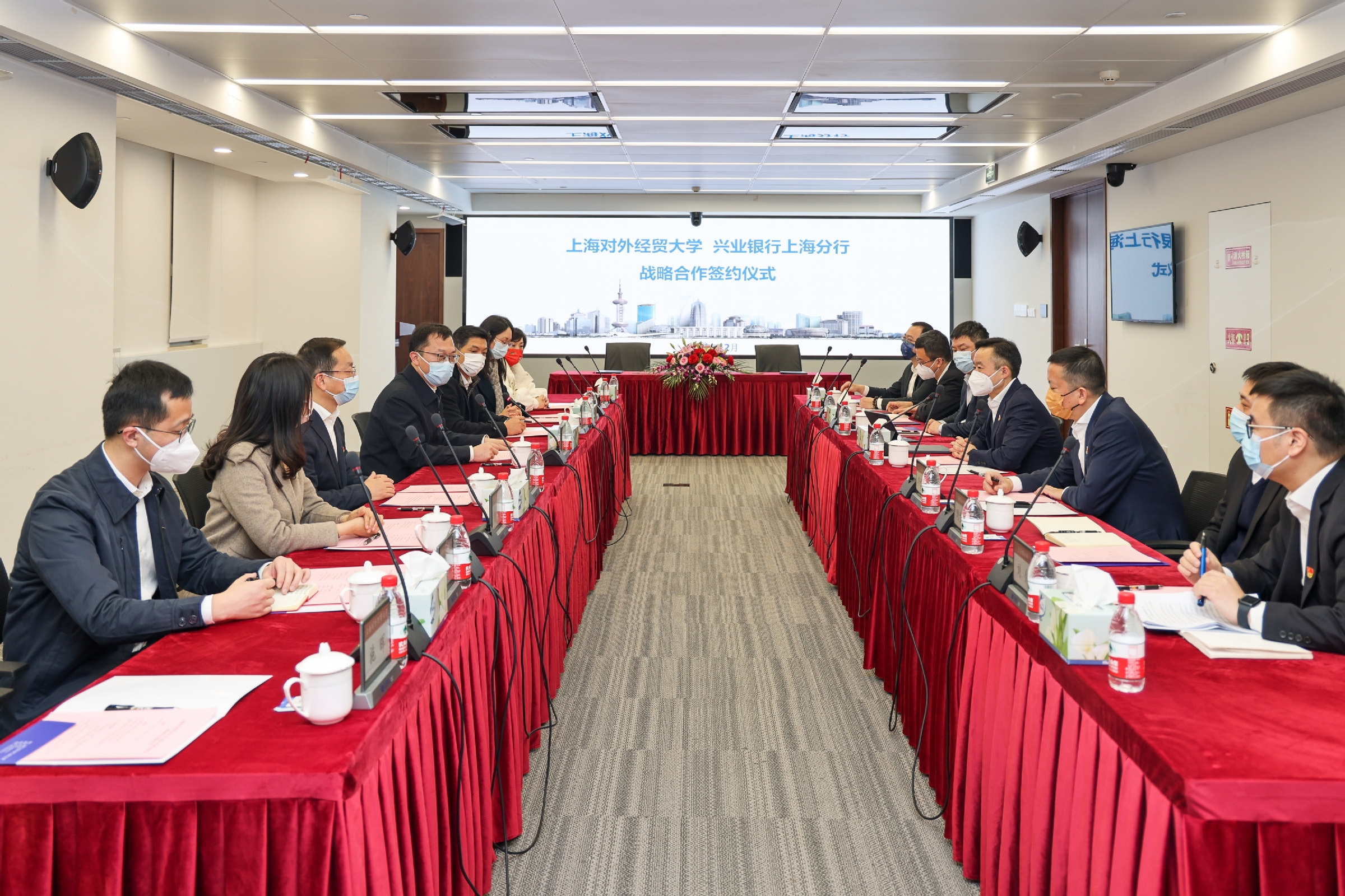 12月15日下午,學校與興業銀行股份有限公司上海分行(以下簡稱“興業銀行上海分行”)戰略合作協議簽約儀式在興業大廈會議室舉行。上海對外經貿大學校長汪榮明、黨委副書記吳毅、相關部門負責人,興業銀行上海分行行長夏維淳、副行長李俊云,相關部門以及支行負責人出席簽約儀式。
