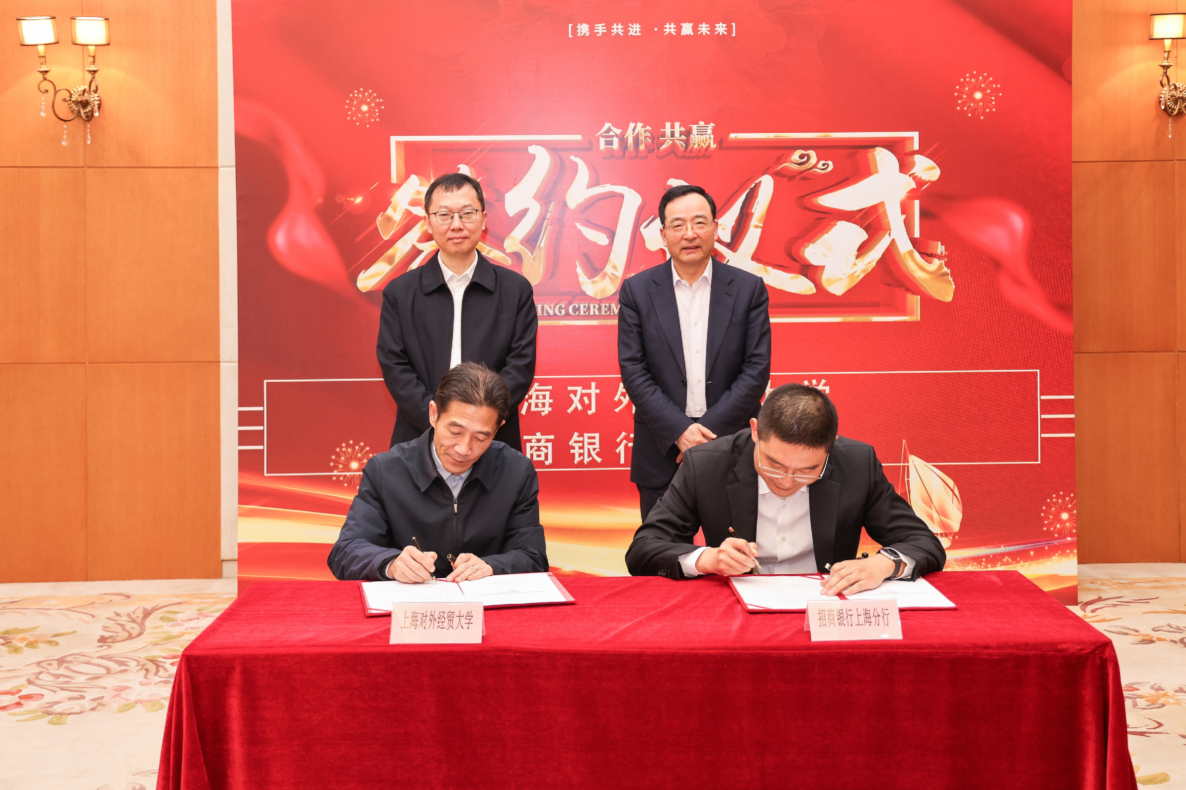12月8日下午,學校與招商銀行股份有限公司上海分行(以下簡稱“招行上海分行”)戰略合作協議簽約儀式在招行上海分行會議室舉行。上海對外經貿大學校長汪榮明、副校長吳忠、相關部門負責人,招行上海分行行長施順華、副行長占京平,相關部門以及支行負責人出席簽約儀式。