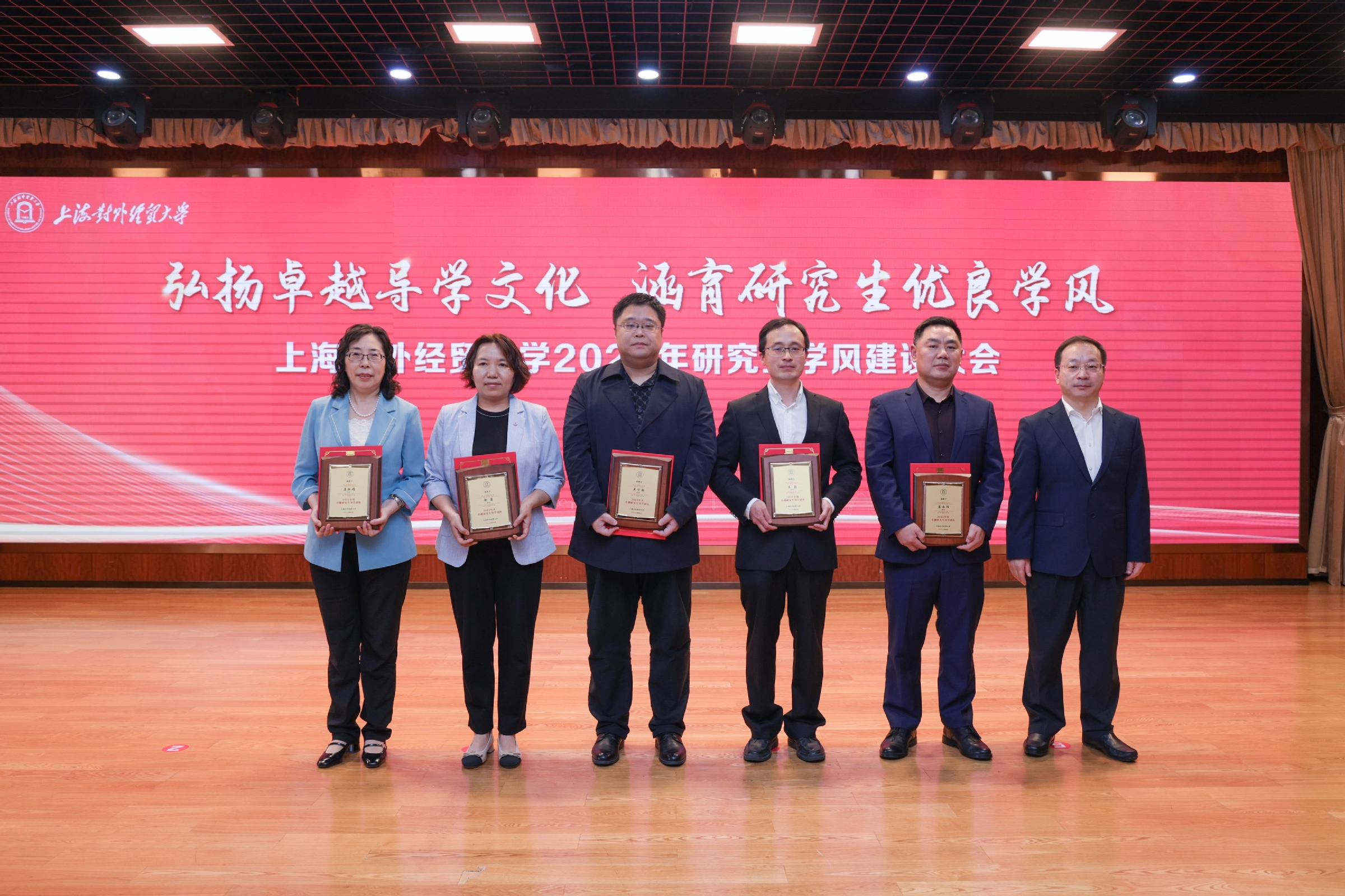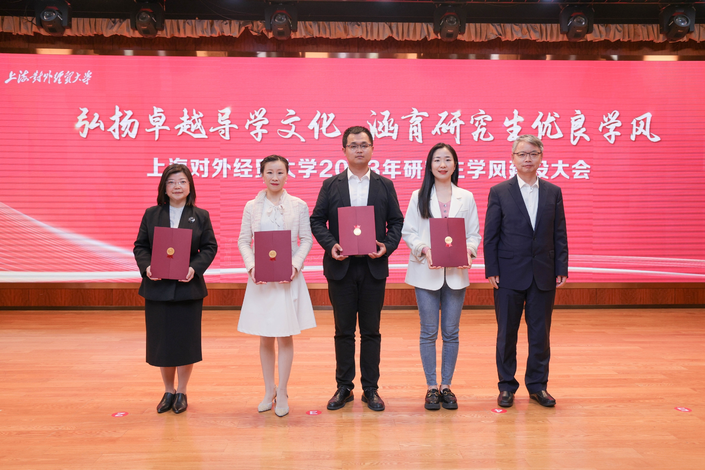 會上,研究生院院長劉永輝宣讀表彰名單。祁明為2022年長三角科學道德和學風建設論壇獲獎者頒獎。吳毅為2022年上海對外經(jīng)貿(mào)大學卓越研究生導學團隊頒獎。黨委學(研)工部部長繆韻笛為2022年研究生國家獎學金獲獎代表頒獎。