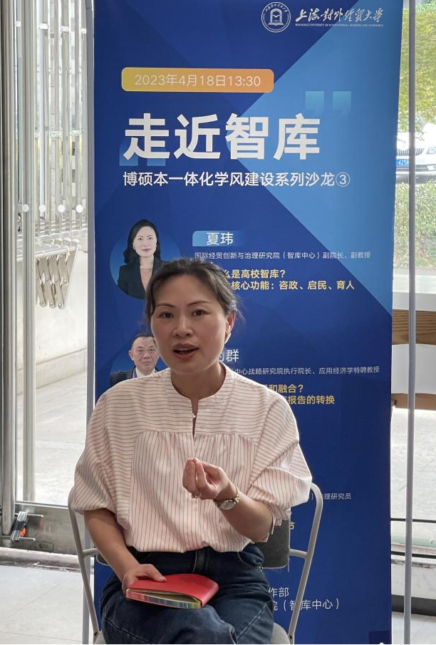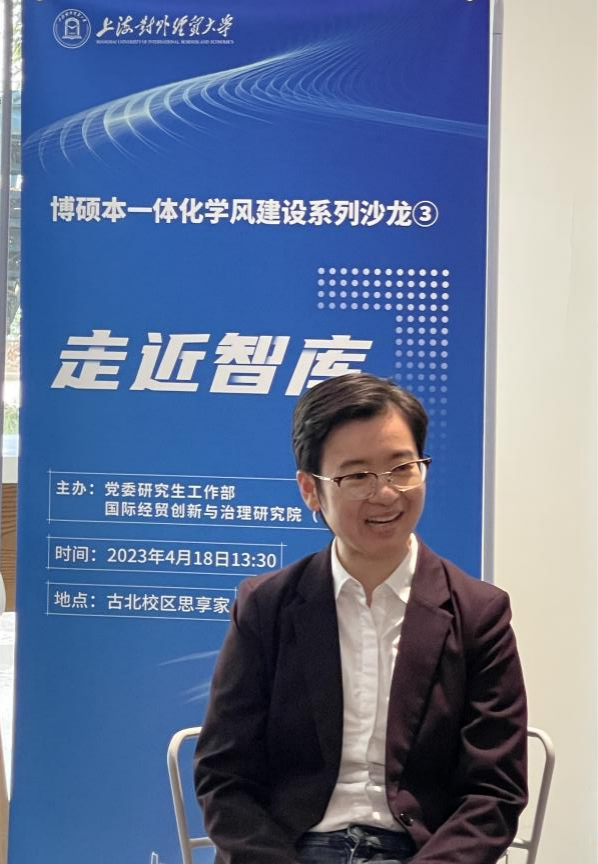 4月18日下午,黨委研究生工作部和國際經貿創新與治理研究院(智庫中心)聯合舉辦博碩本一體化學風建設“走近智庫”師生沙龍,活動在古北校區學生社區思享家舉辦。上海國際貿易中心戰略研究院執行院長姚為群、國際經貿創新與治理研究院(智庫中心)副院長夏瑋、助理研究員牛東芳參加了沙龍,活動由黨委研究生工作部副部長、研究生院副院長喬檀主持。