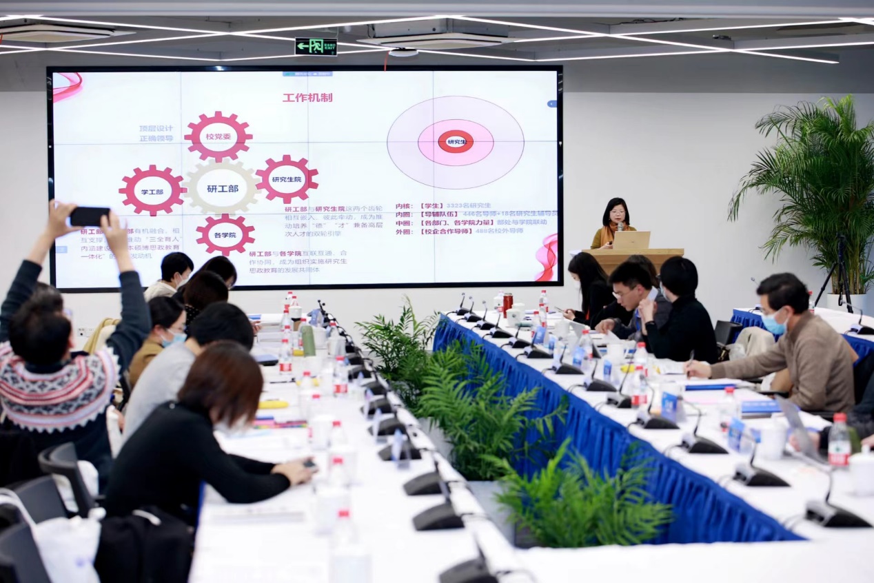 喬檀介紹了我校推進研究生思政教育“守正創(chuàng)新”的路徑探索和特色做法,一是強化制度供給,織密研究生思政教育的工作體系;二是強化主體供給,筑牢研究生思政教育的組織體系;三是強化載體供給,推進研究生思政教育與學術教育的深度融合;四是強化內容供給,厚植校園文化的學術底蘊。