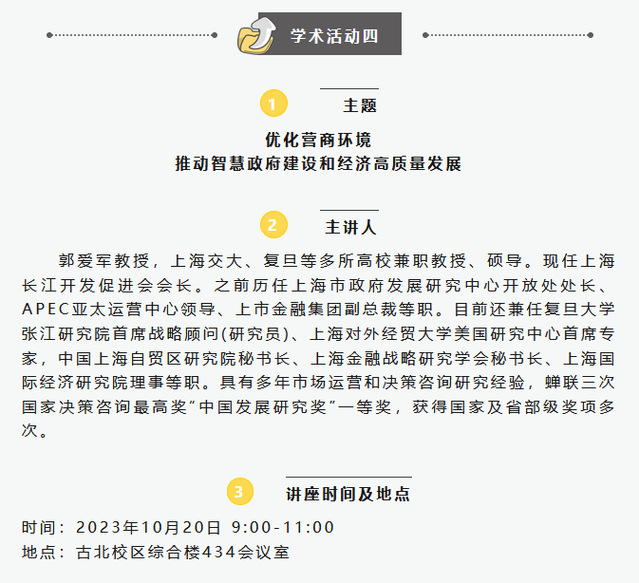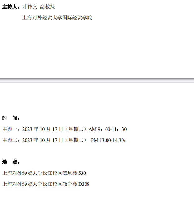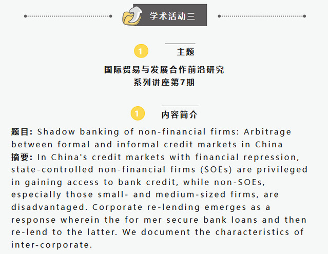 【上經貿大·科研】第五周學術活動預告