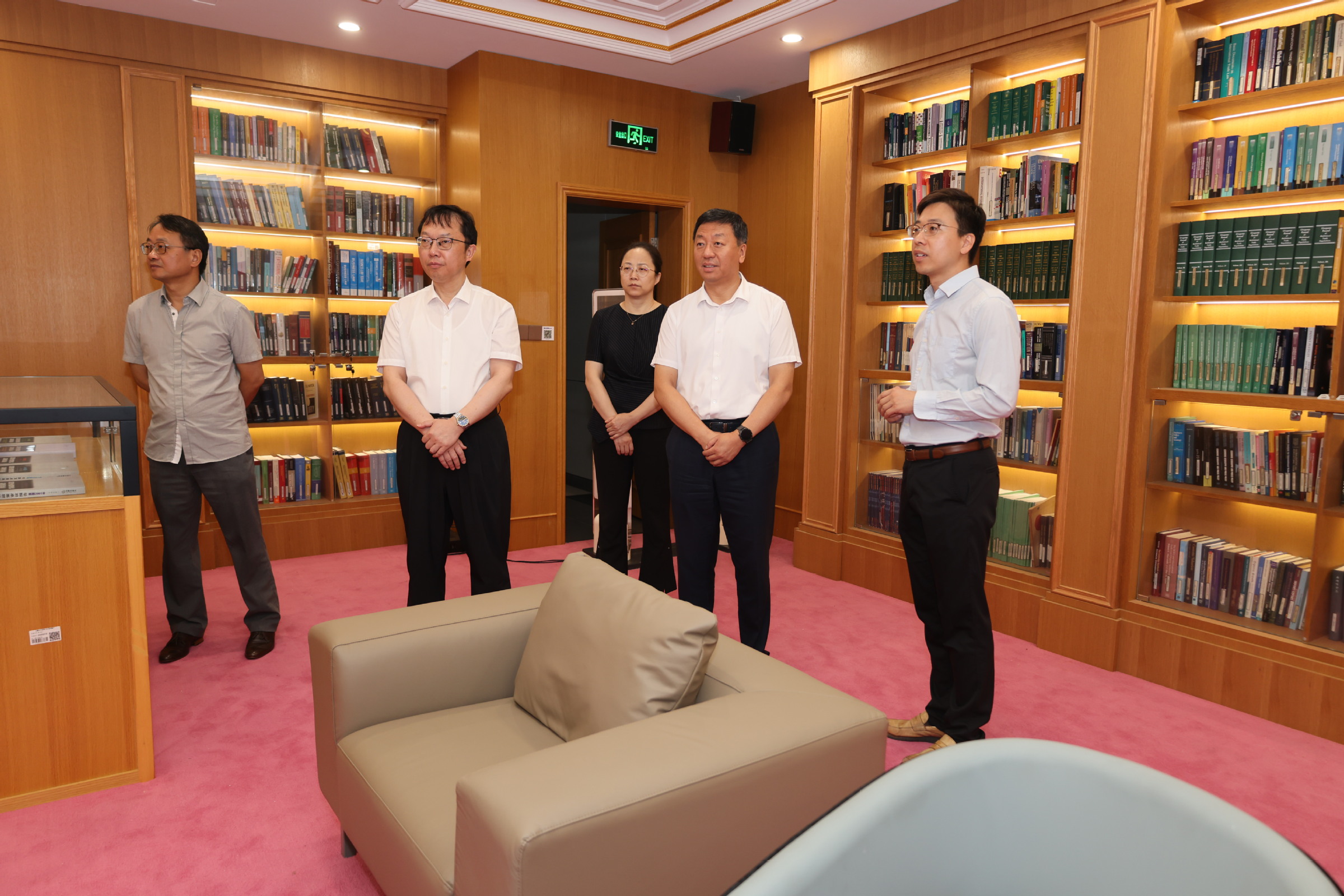 會前,鄭剛一行參觀調研了WTO亞太培訓中心和學校博物館首展,WTO亞太培訓中心執行主任應品廣、博物館館長丁燁陪同講解。