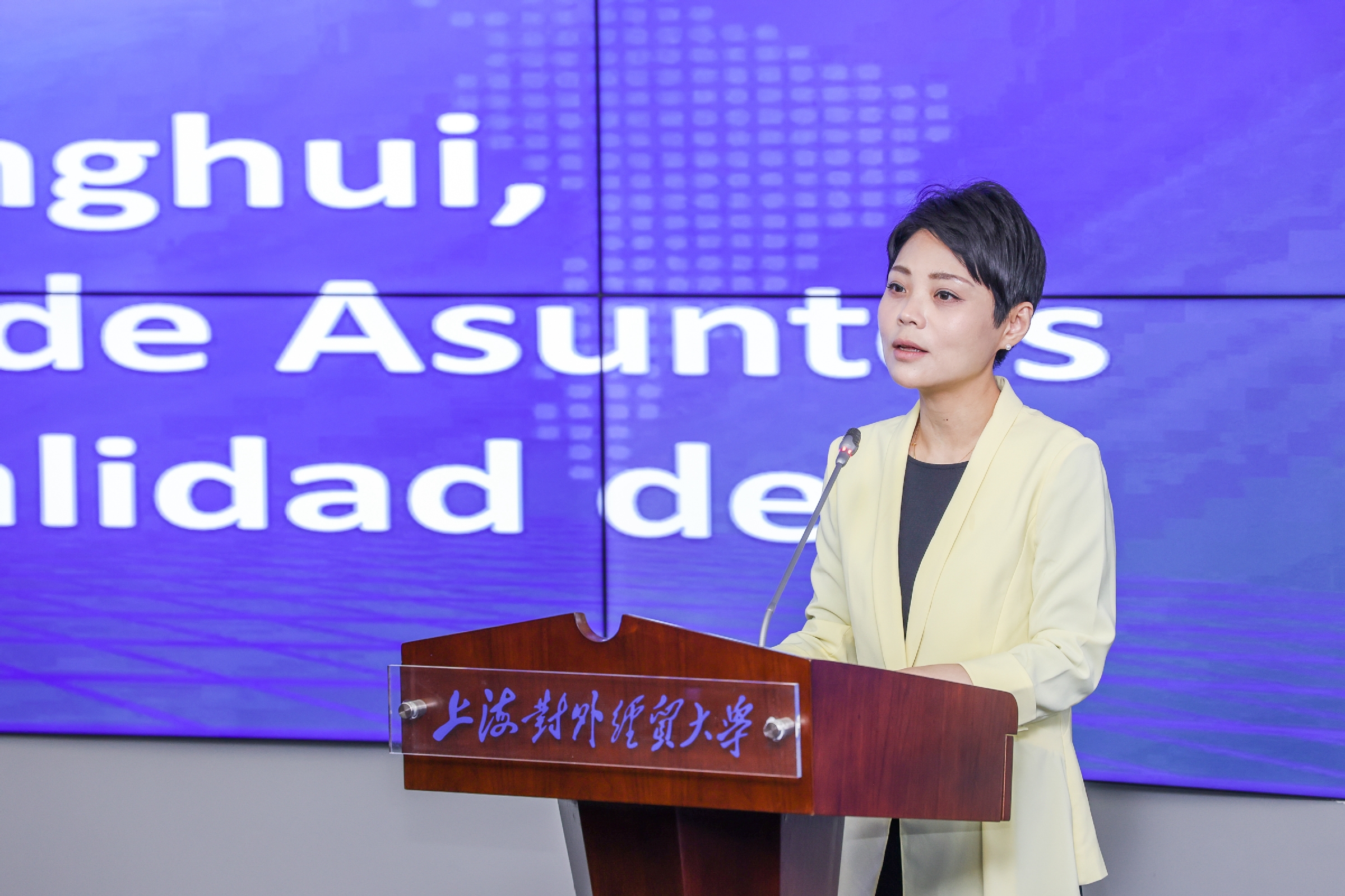 市政府外辦副主任馬穎慧在致辭指出,非常榮幸能把上海這座魅力城市介紹給來自拉美的朋友們,也感謝學校為此次研修班提供了有力支持。本次研修班選擇大家共同關心的“城市經濟發展”為主題,體現了上海希望發揮自身優勢,加深和拉美地區更加務實合作的重要意義。希望研修班的學員在上海研修期間能增進對上海、對中國的理解,能促進上海與各友好城市之間的交流,能學有所獲,增進彼此友誼。