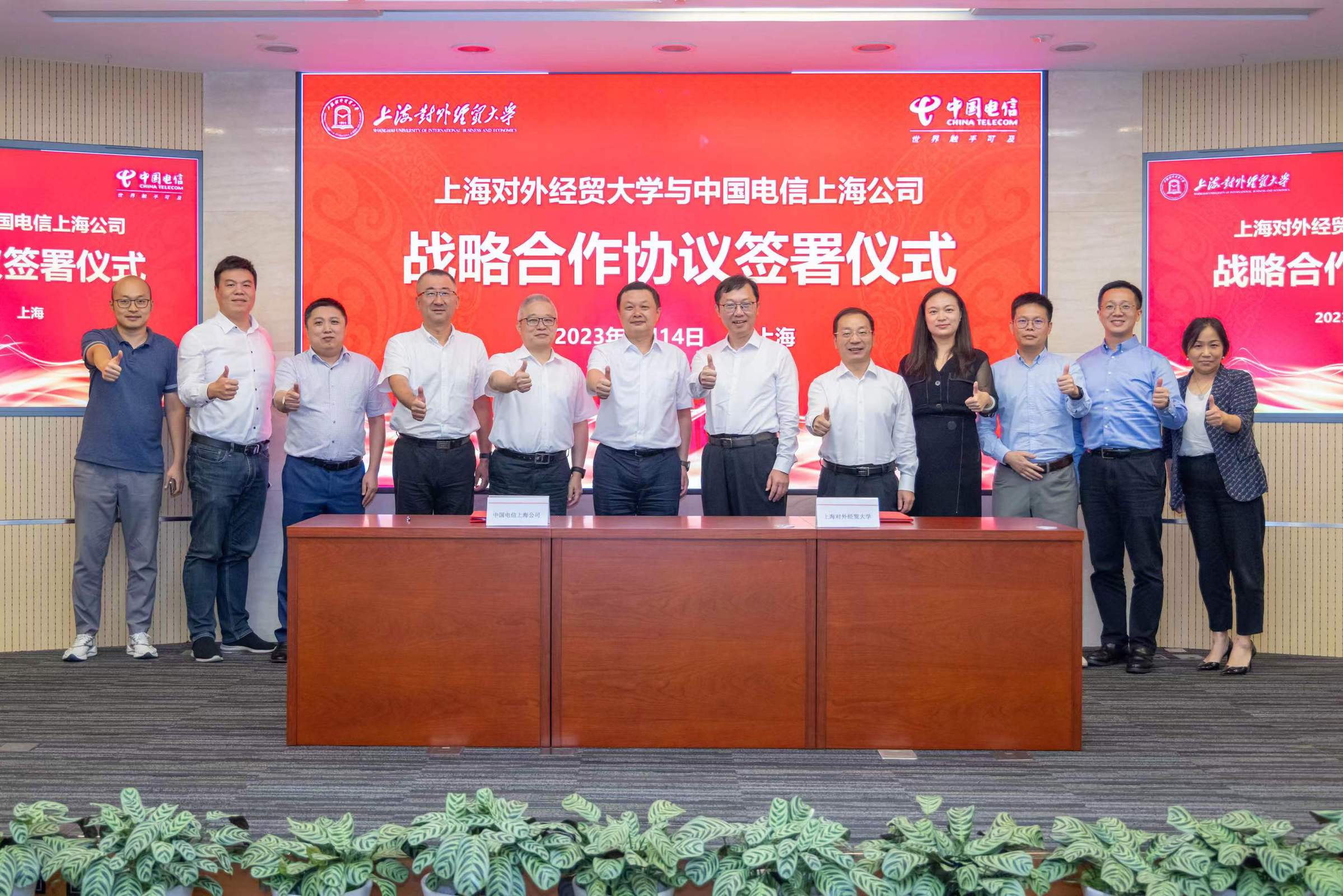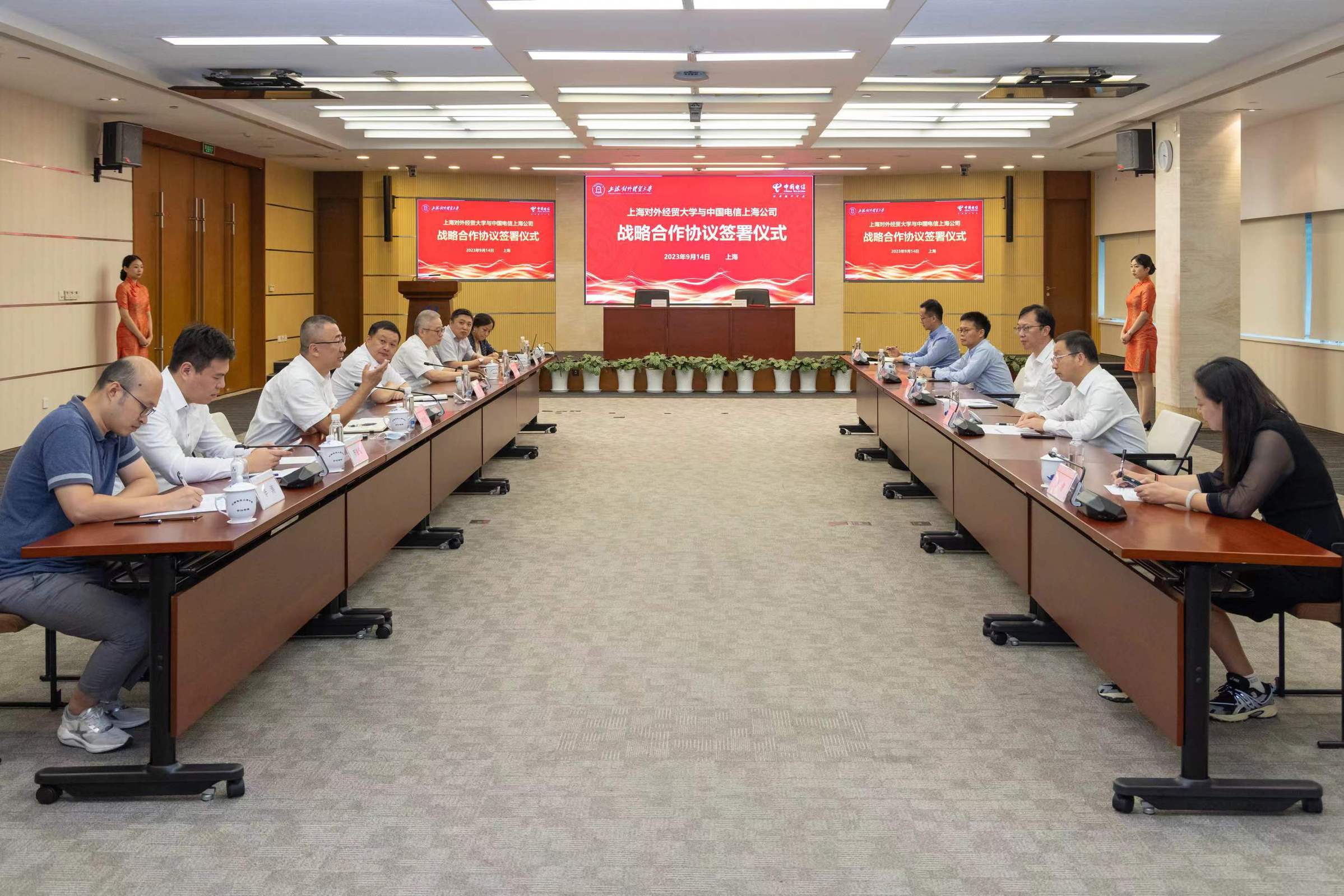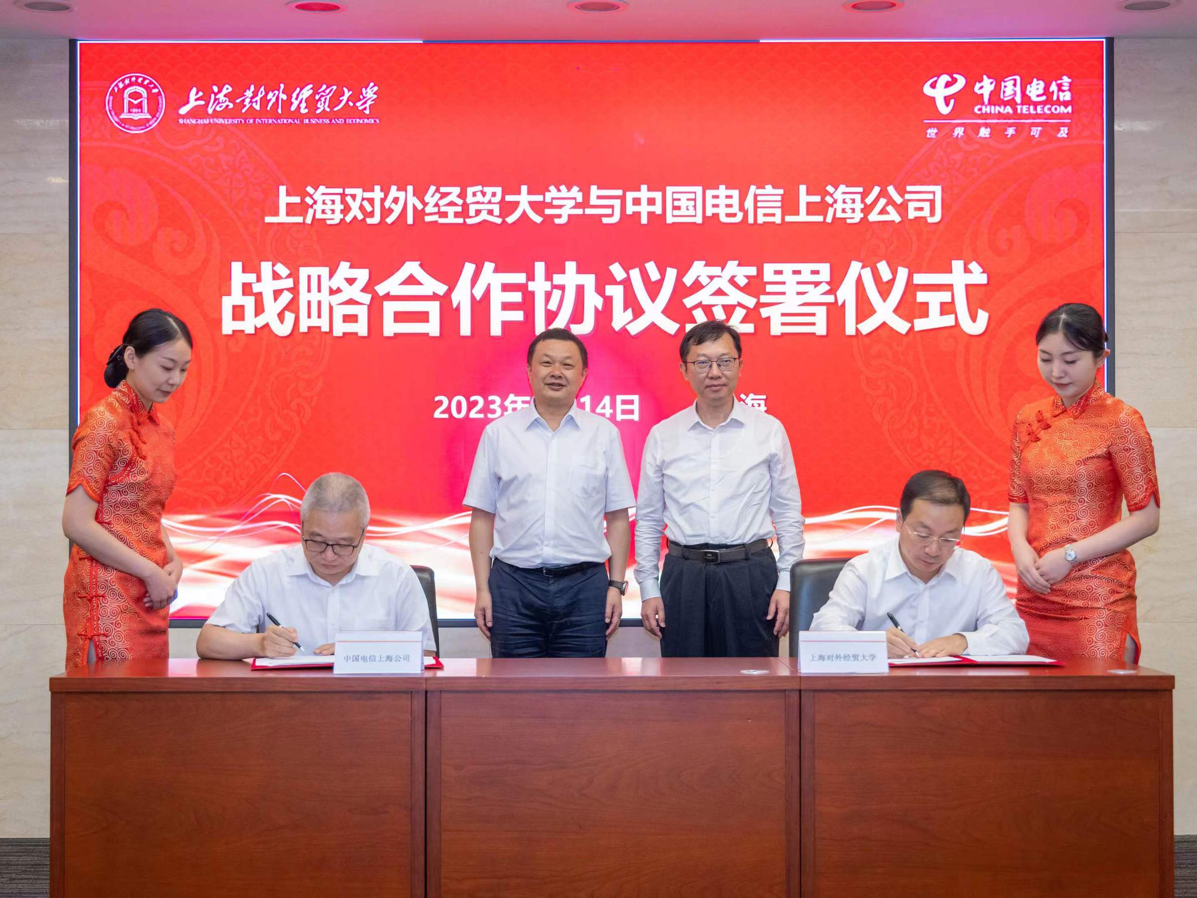 9月14日下午,學(xué)校與中國(guó)電信上海公司(以下簡(jiǎn)稱“上海電信”)戰(zhàn)略合作協(xié)議簽約儀式在上海信息大樓會(huì)議室舉行。上海對(duì)外經(jīng)貿(mào)大學(xué)校長(zhǎng)汪榮明、黨委副書(shū)記吳毅、相關(guān)部門(mén)負(fù)責(zé)人;上海電信黨委書(shū)記、總經(jīng)理龔勃,財(cái)務(wù)總監(jiān)王海建,相關(guān)部門(mén)負(fù)責(zé)人出席簽約儀式并座談。