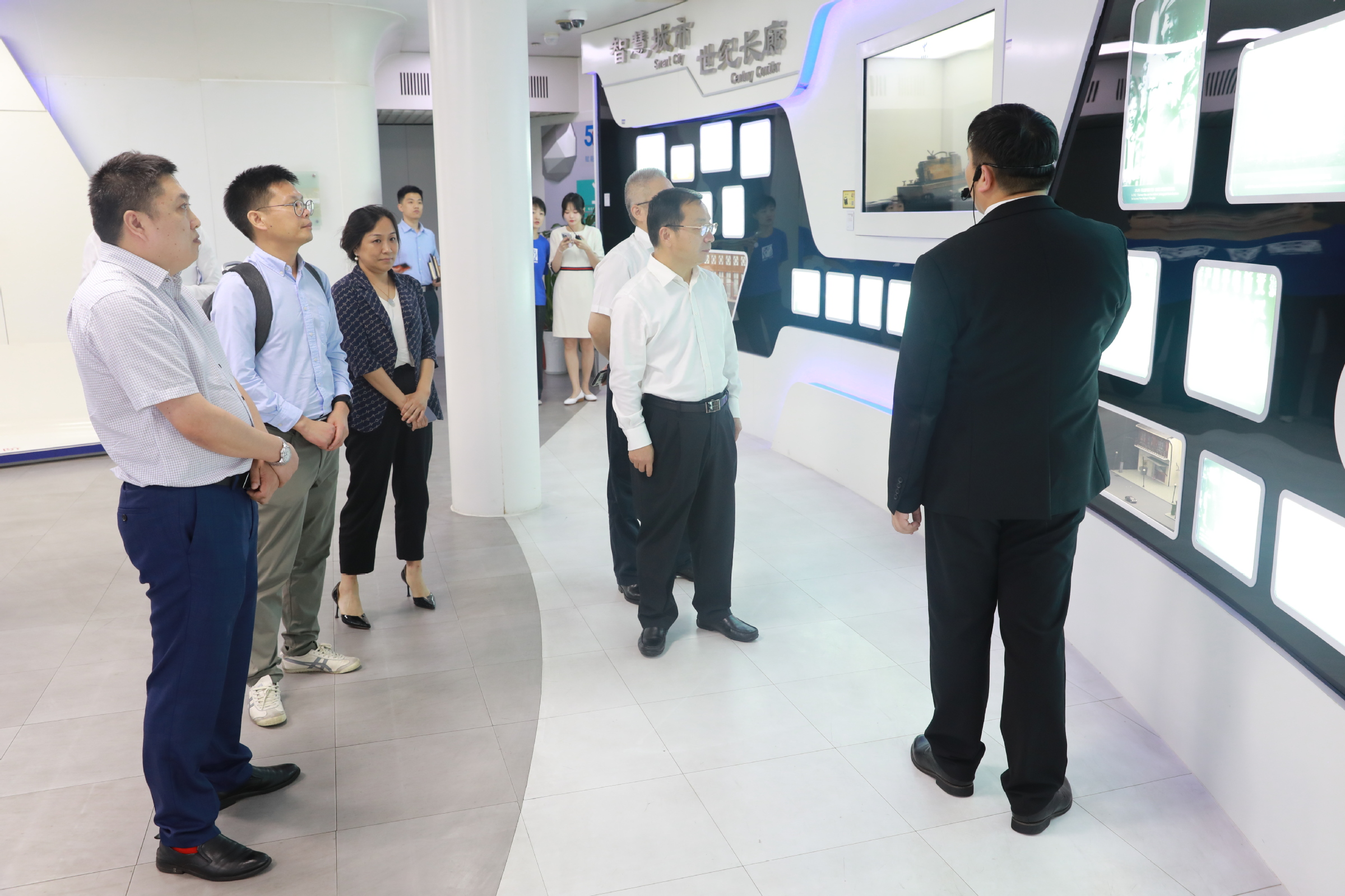 儀式上,在汪榮明和龔勃的見(jiàn)證下,吳毅與王海建代表校企雙方簽署了戰(zhàn)略合作協(xié)議。座談交流后,雙方參觀了信息生活體驗(yàn)館。