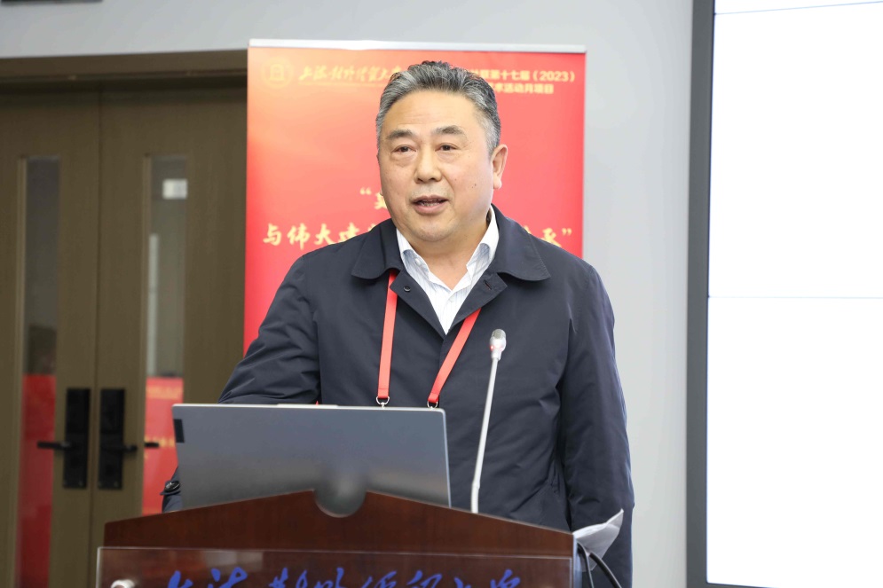 上海對外經貿大學馬克思主義學院研究生公共課教研室主任袁則文作“延安精神的內涵解讀及其當下啟示”的報告。他從新征程推進全面深化改革和中國式現代化、保持全黨全民凝聚團結、確保中國特色社會主義事業發展行穩致遠、應對當前國際新形勢、推動民族復興不斷前進等方面,解讀延安精神的內涵及當下啟示。